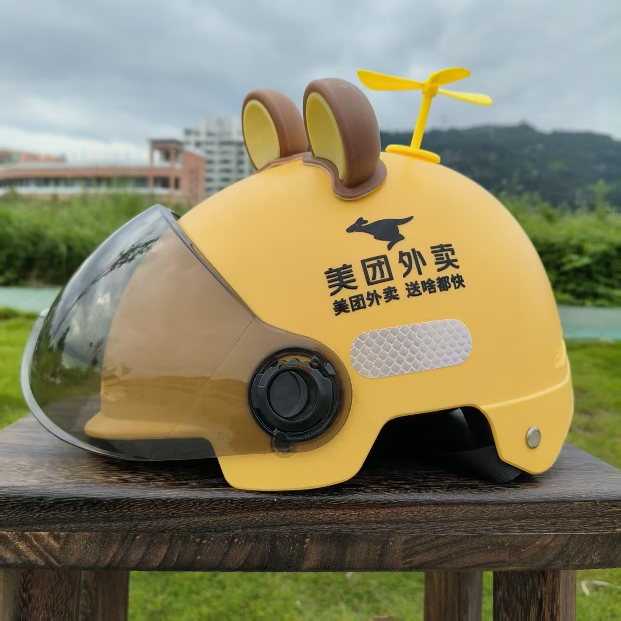 3C美团骑手头盔外卖安全帽子四季通用电动车半盔夏季透气防晒镜片