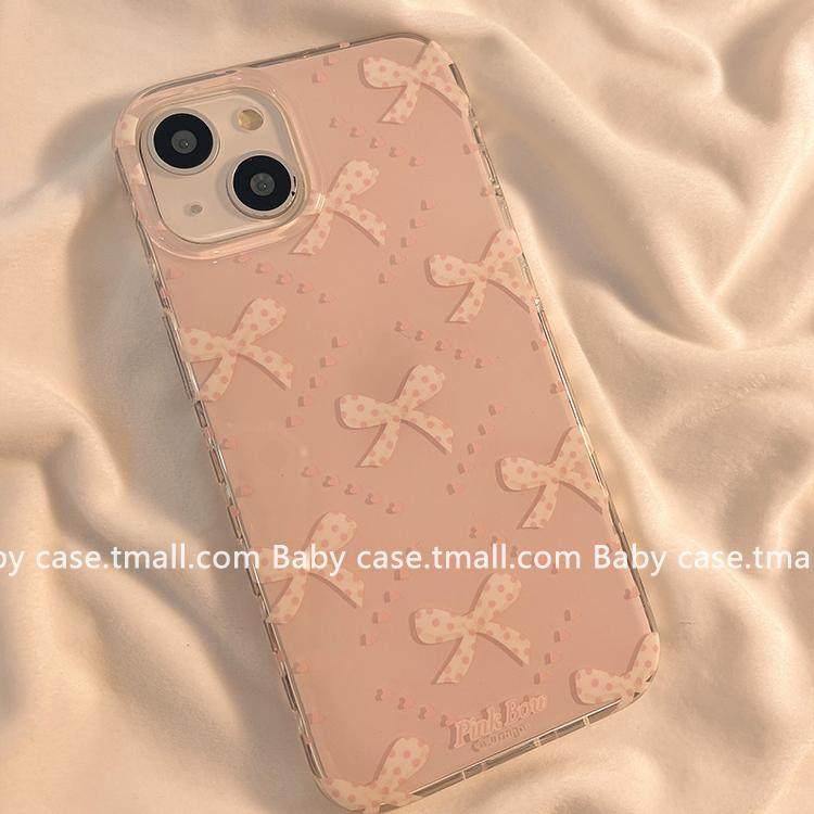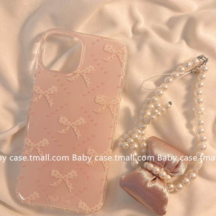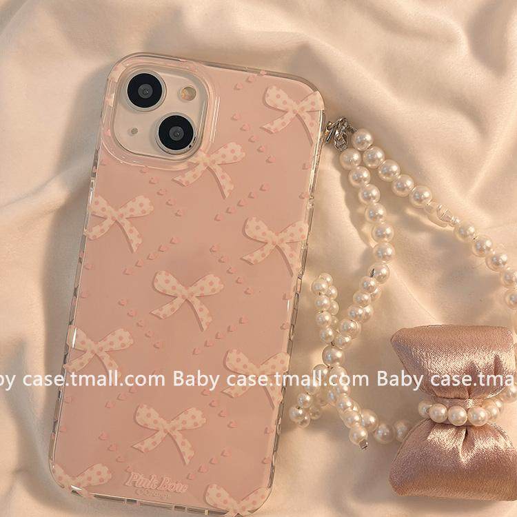 少女粉色蝴蝶结珍珠适用iPhone15promax手机壳苹果13pro新款带链条14日韩11气质15小众女14pro全包12pm手机套