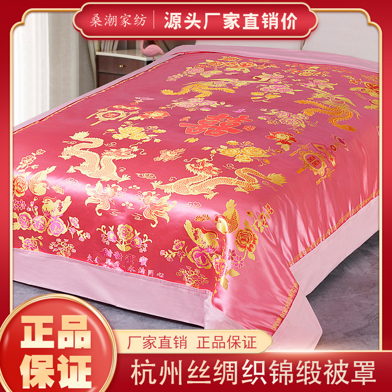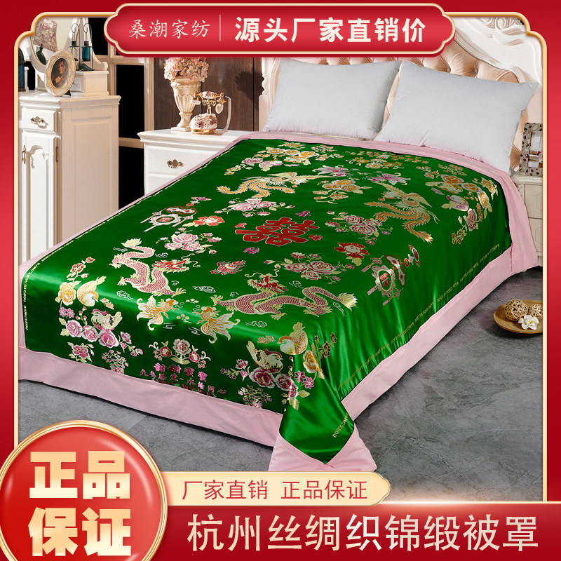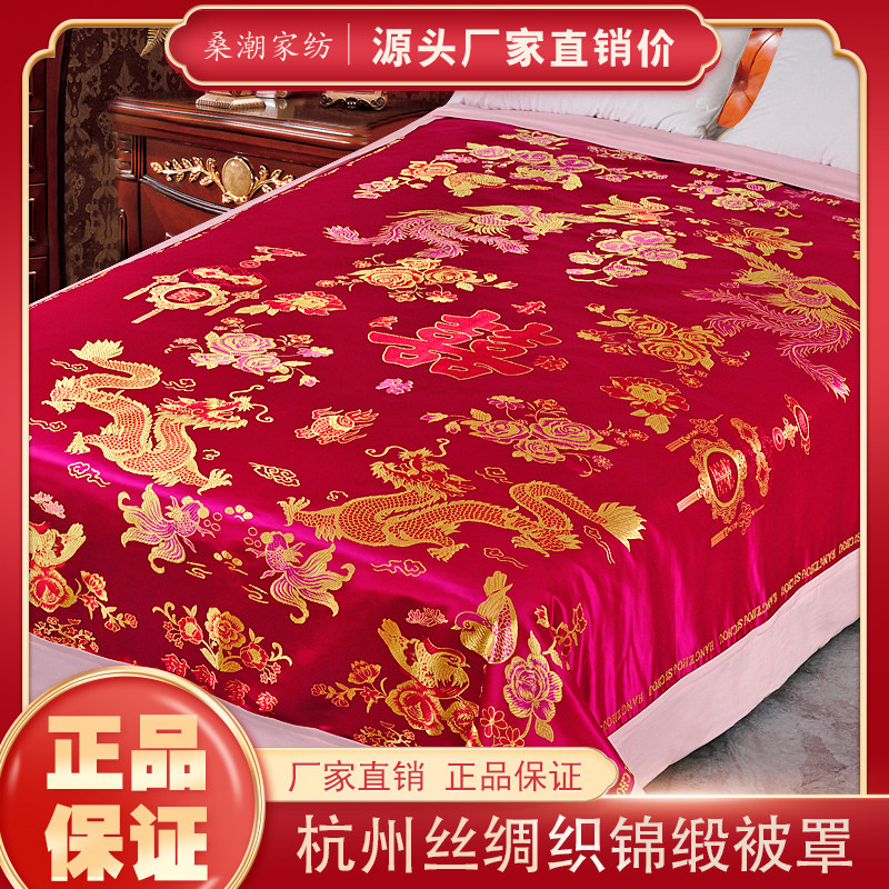 结婚被子喜被陪嫁新婚庆用蚕丝被大红绿龙凤百子丝绸缎手工纯棉被