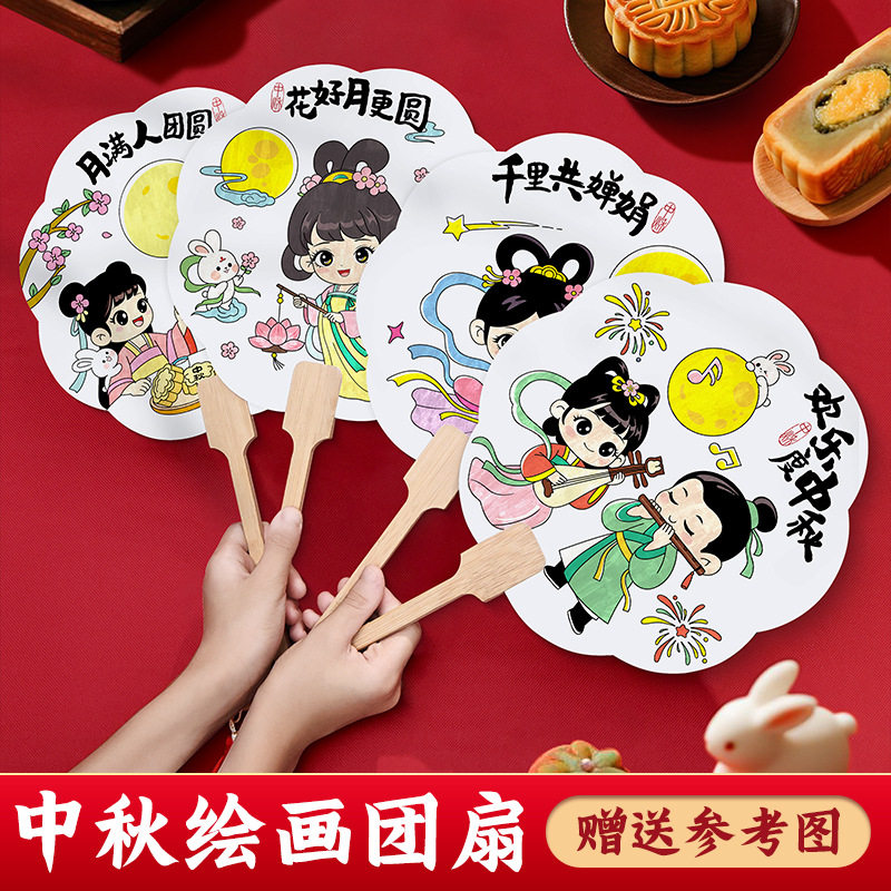 中秋节活动伴手礼儿童涂鸦国风团扇创意国潮幼儿园礼物古风扇子