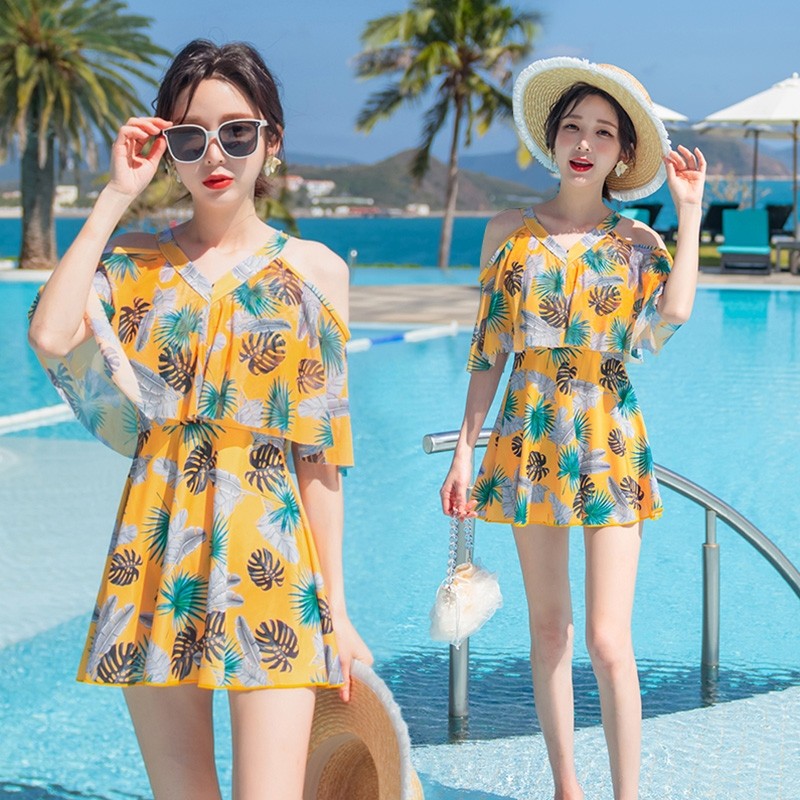 泳衣游泳衣女裙式分体修身显瘦保守带胸垫遮肉防走光泡温泉泳装