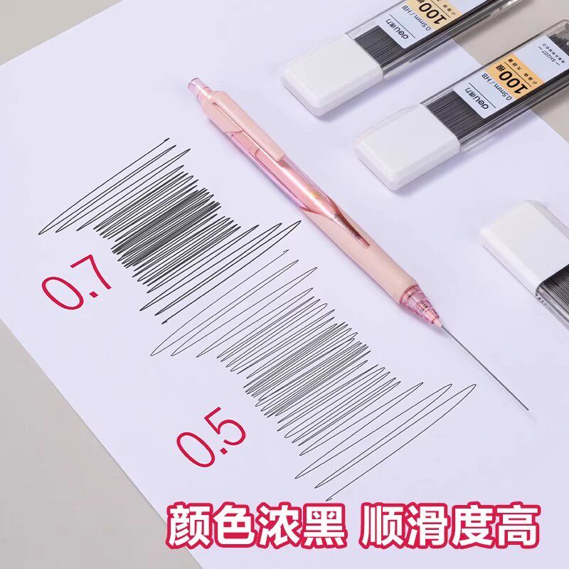 得力自动铅芯铅笔芯2b小学生用hb活动铅笔0.5/0.7mm不断芯大容量自动笔通用适配芯sh207不易断