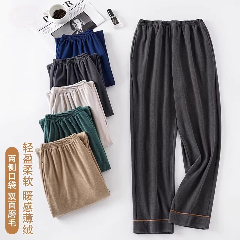 德绒睡裤男士秋冬款长裤大码宽松纯色保暖冬天可外穿家居裤睡衣