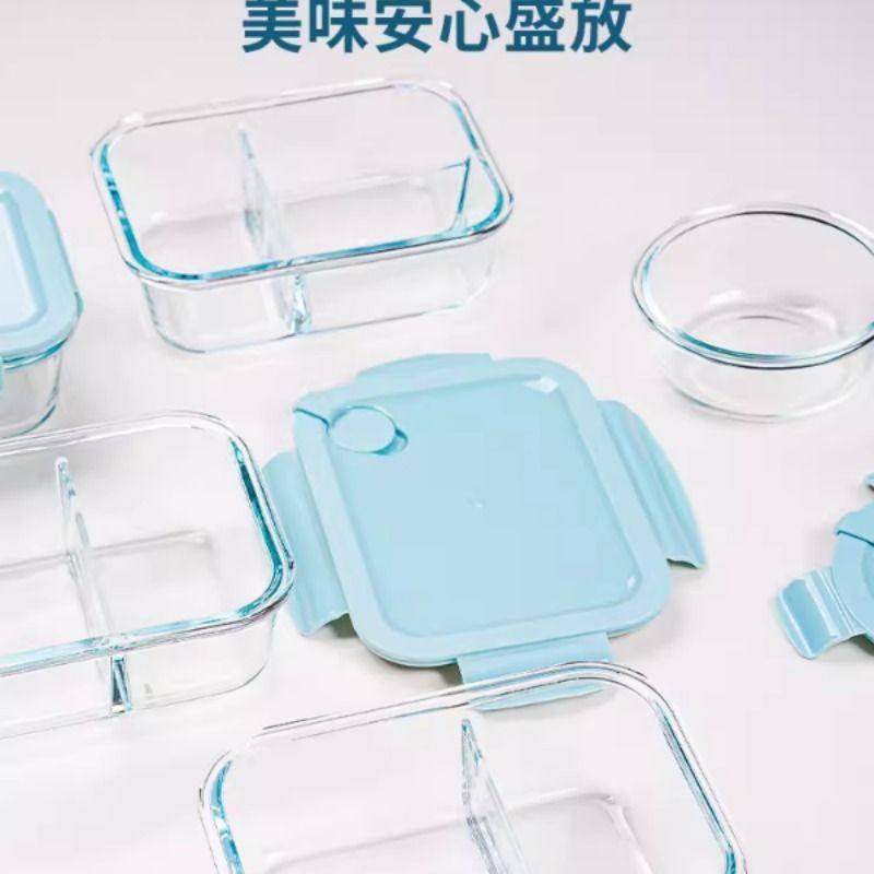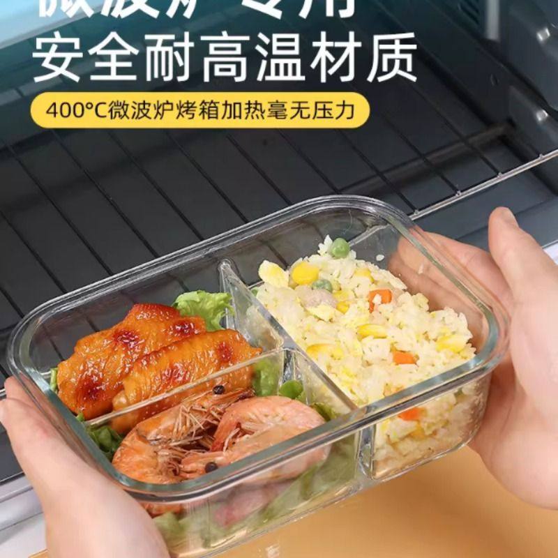 玻璃饭盒可微波炉加热专用的碗上班族学生带盖餐盒分隔便当保鲜盒