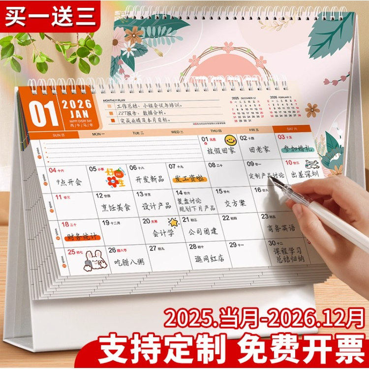 台历2026年新款日历定制logo创意简约小清新韩式办公年历个性中国风桌面摆件商务工作记事计划本订制广告月历