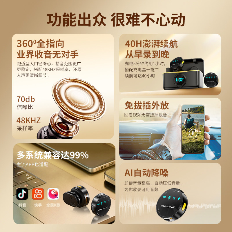 无线麦克风领夹式收音麦直播主录音设备夹领式手机拍视频口播专用