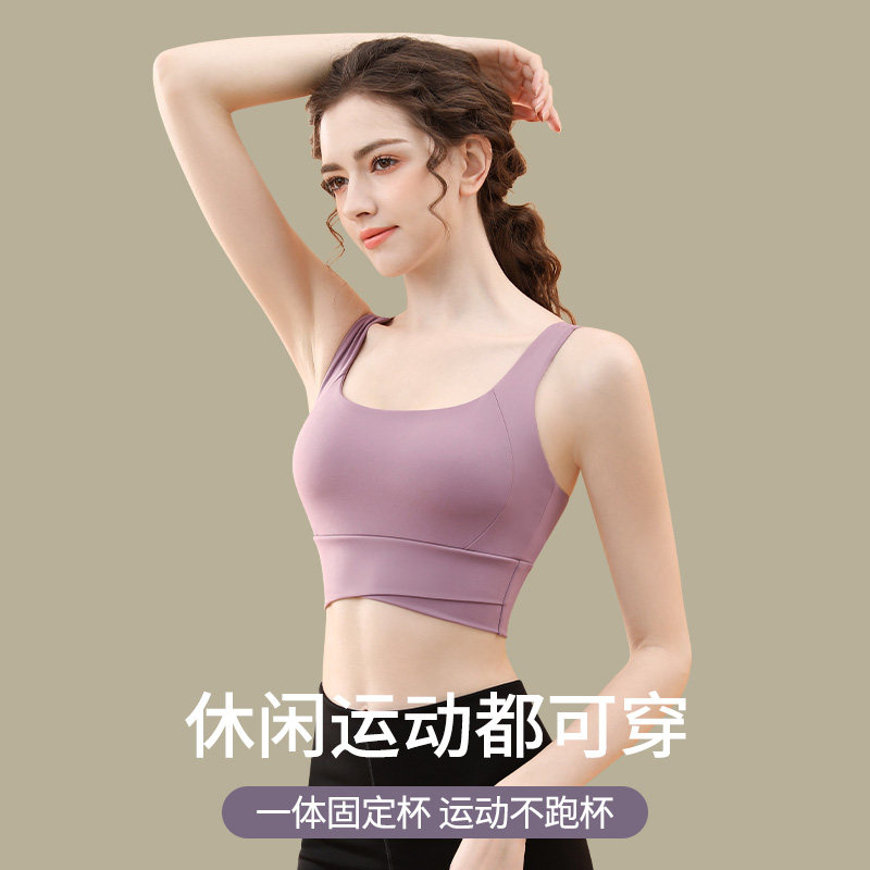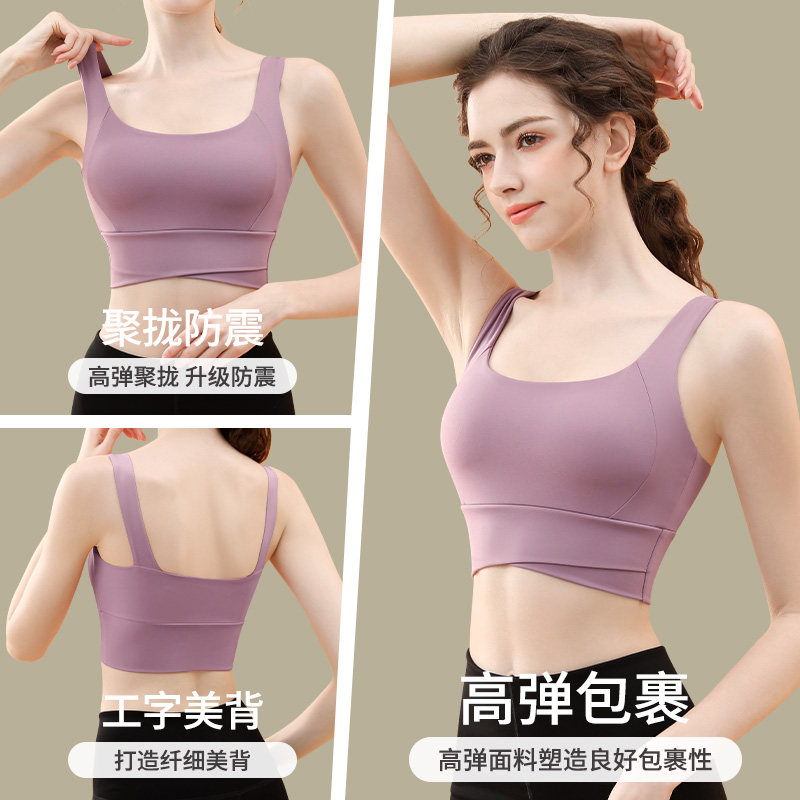 运动内衣女高强度健身跑步防震瑜伽服一体美背心式文胸聚拢防下垂