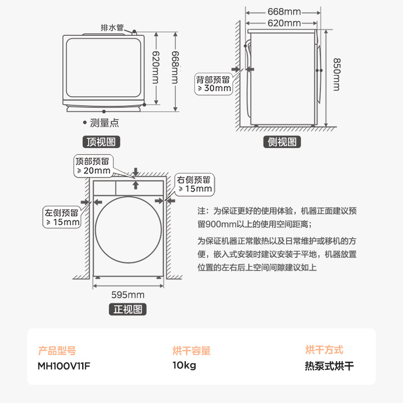 美的官方旗舰10KG家用全自动热泵式烘干机除菌除螨滚筒干衣机V11F