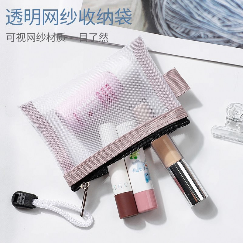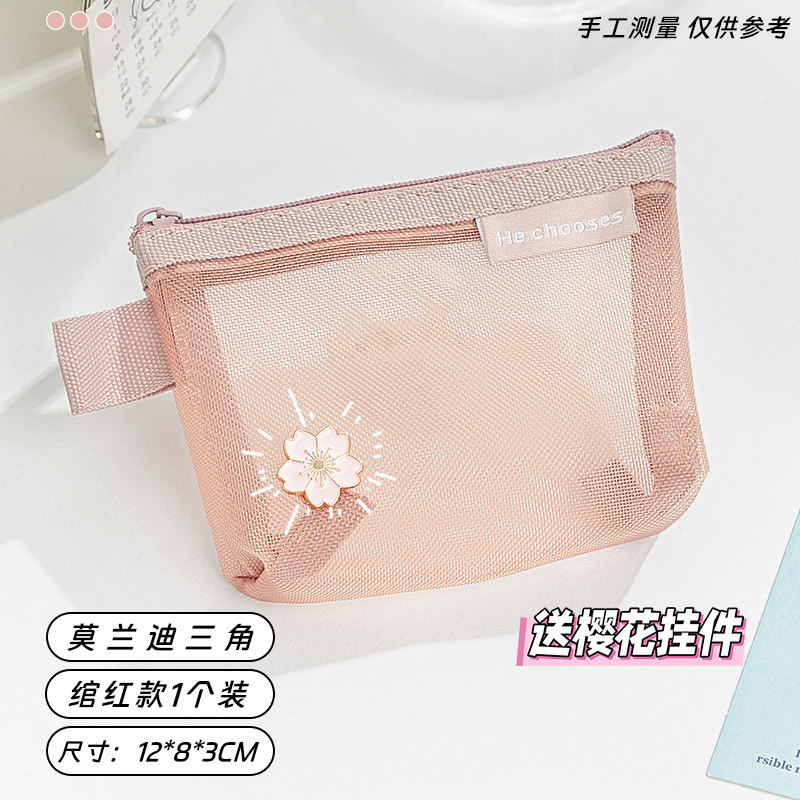 樱花透明收纳袋零钱拉链袋简约迷你袋女士网格袋新款硬币钥匙卡袋小物品杂物袋便携口红化妆包分装袋公交卡包