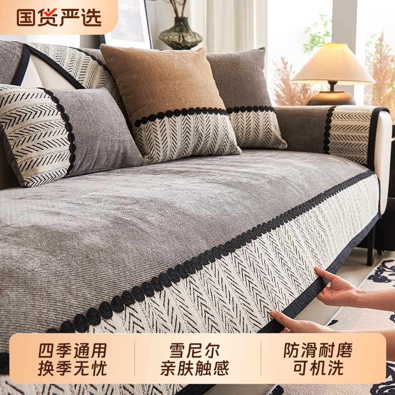 雪尼尔沙发垫四季通用可拆洗防滑防猫抓简约现代三座一贵妃沙发套