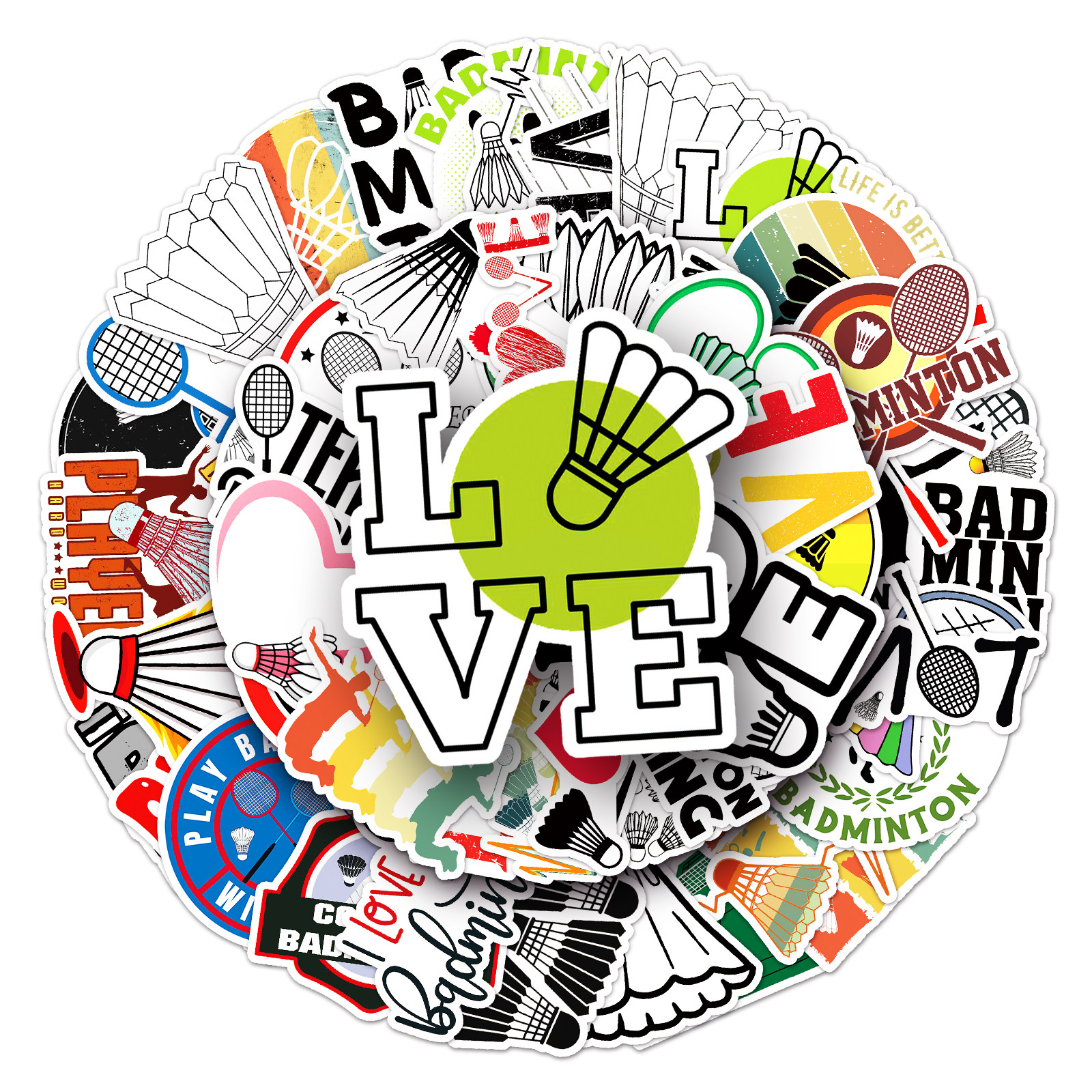 100张羽毛球贴纸体育器材复古创意个性涂鸦素材装饰贴画冰箱摩托车电脑滑板手机壳头盔钓鱼箱拉杆箱防水贴纸