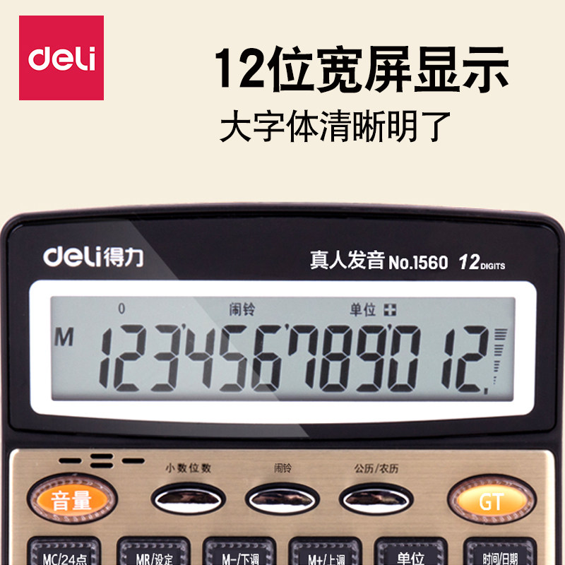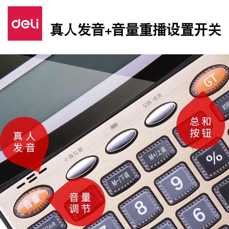 得力语音计算器带声音超市财务会计大屏幕大按键办公室大号计算机