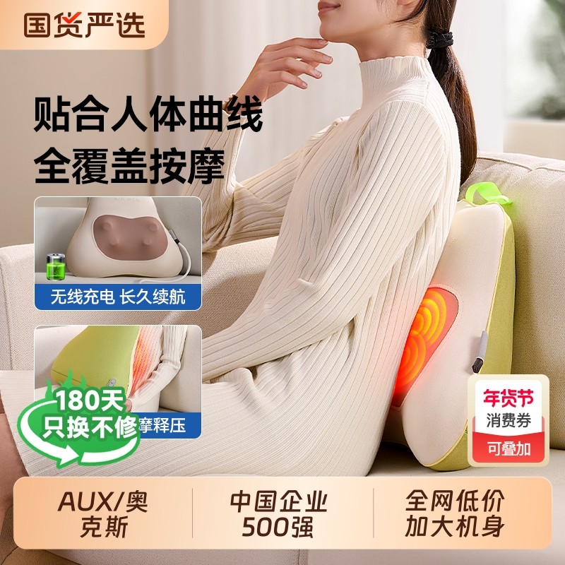 奥克斯腰部按摩仪颈椎背部按摩器全身自动揉捏枕靠背垫多功能神器