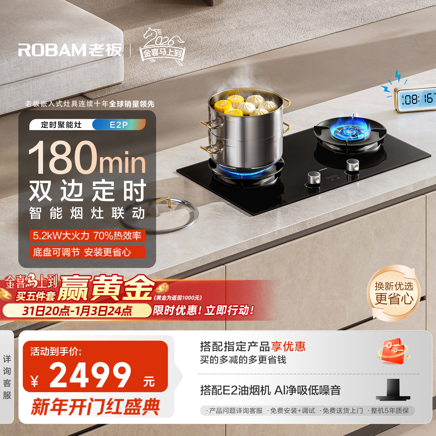 老板定时E2P燃气灶大火力天然气煤气灶双灶联动油烟机官方旗舰