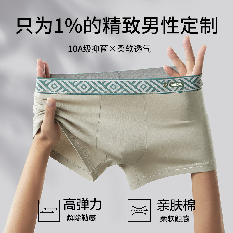 佐印80支莫代尔男士内裤7a抗菌男式四角内裤青少年裤衩男款短裤