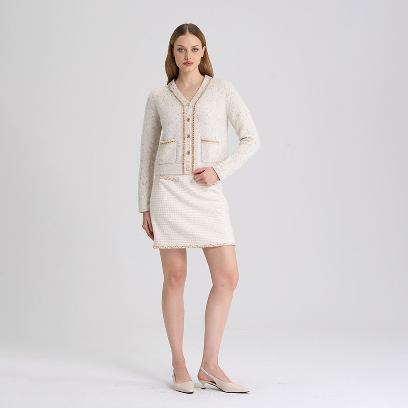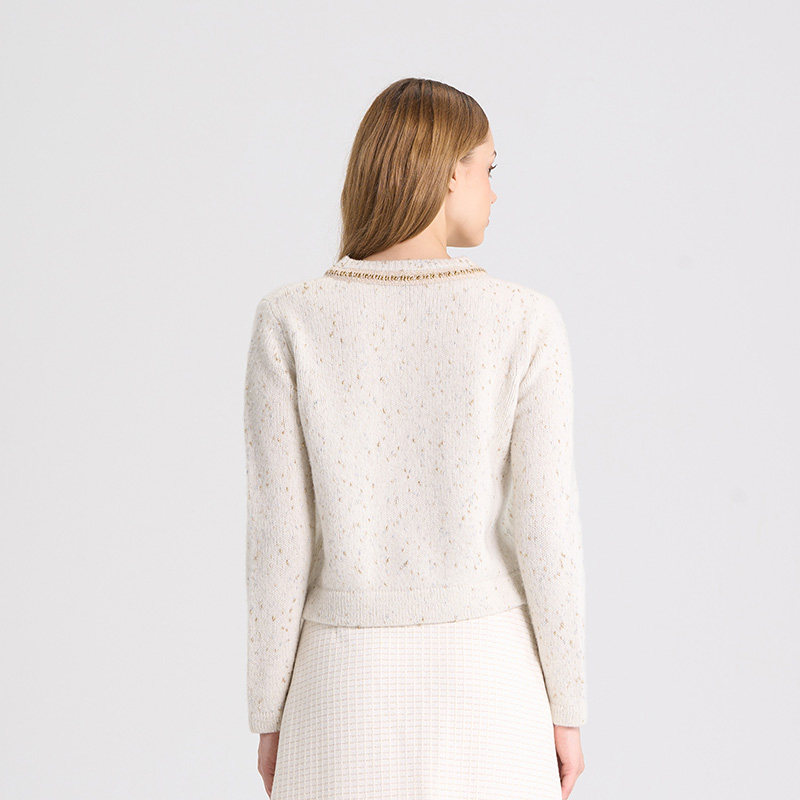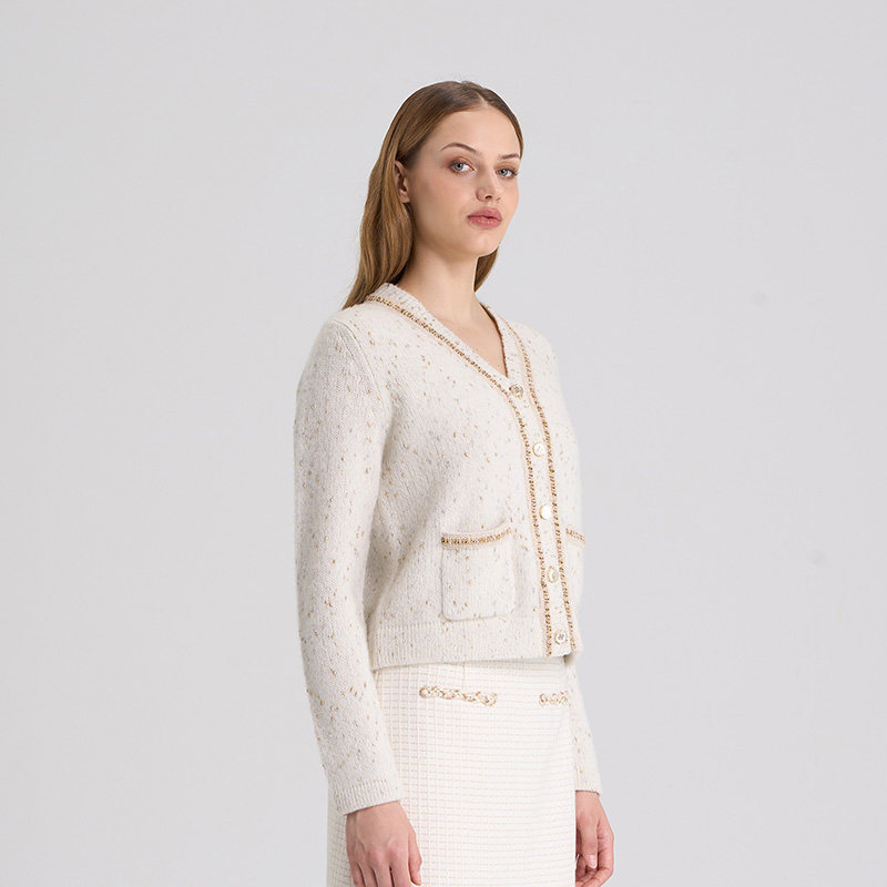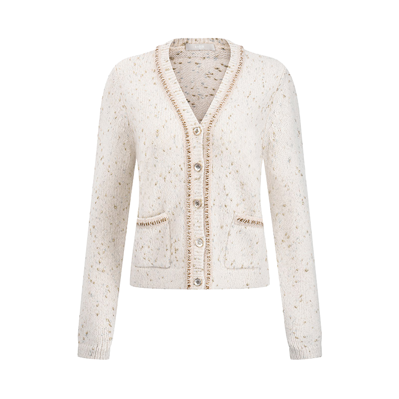 RARE威雅女装 秋冬新款白色V领小香风羊毛衫女毛开衫RR2246250331
