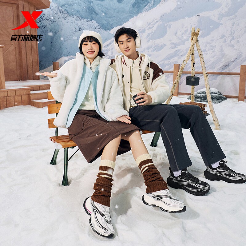 王鹤棣同款丨特步巴斯克2休闲鞋女复古老爹鞋增高运动鞋男鞋棉鞋