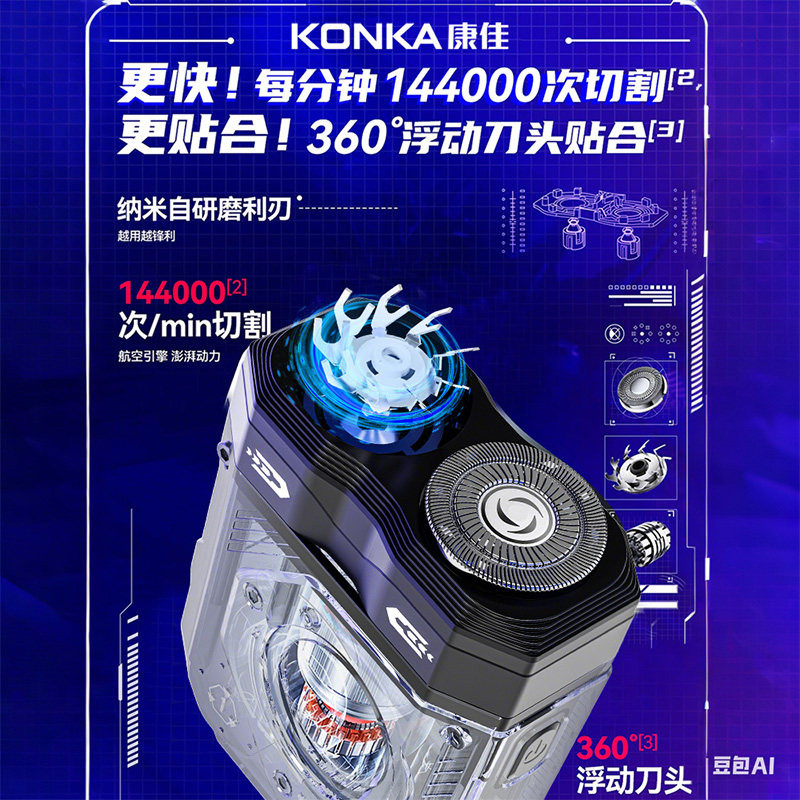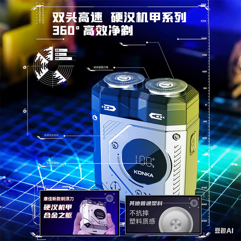 康佳2025年电动剃须刀男士机甲新款正品电动刮胡刀便携剃胡刀德国