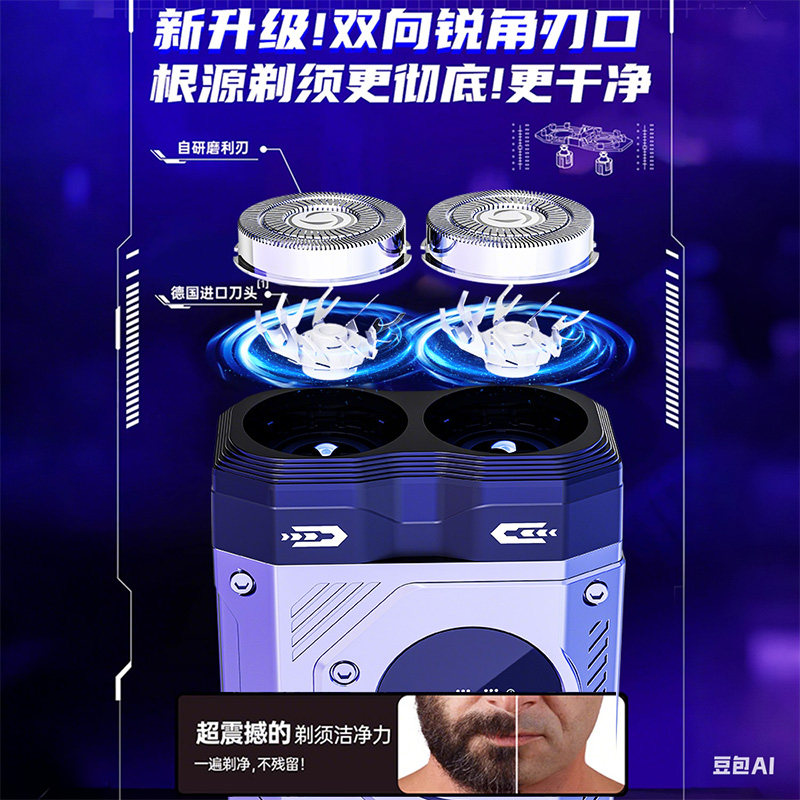 博锐剃须刀电动男士刮胡刀胡须刀刮胡子刀快充便携水洗礼物正品