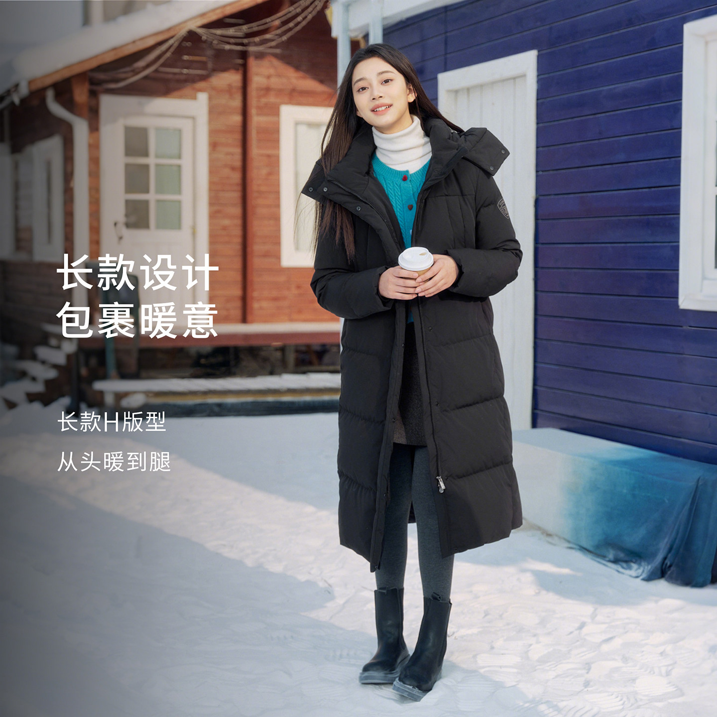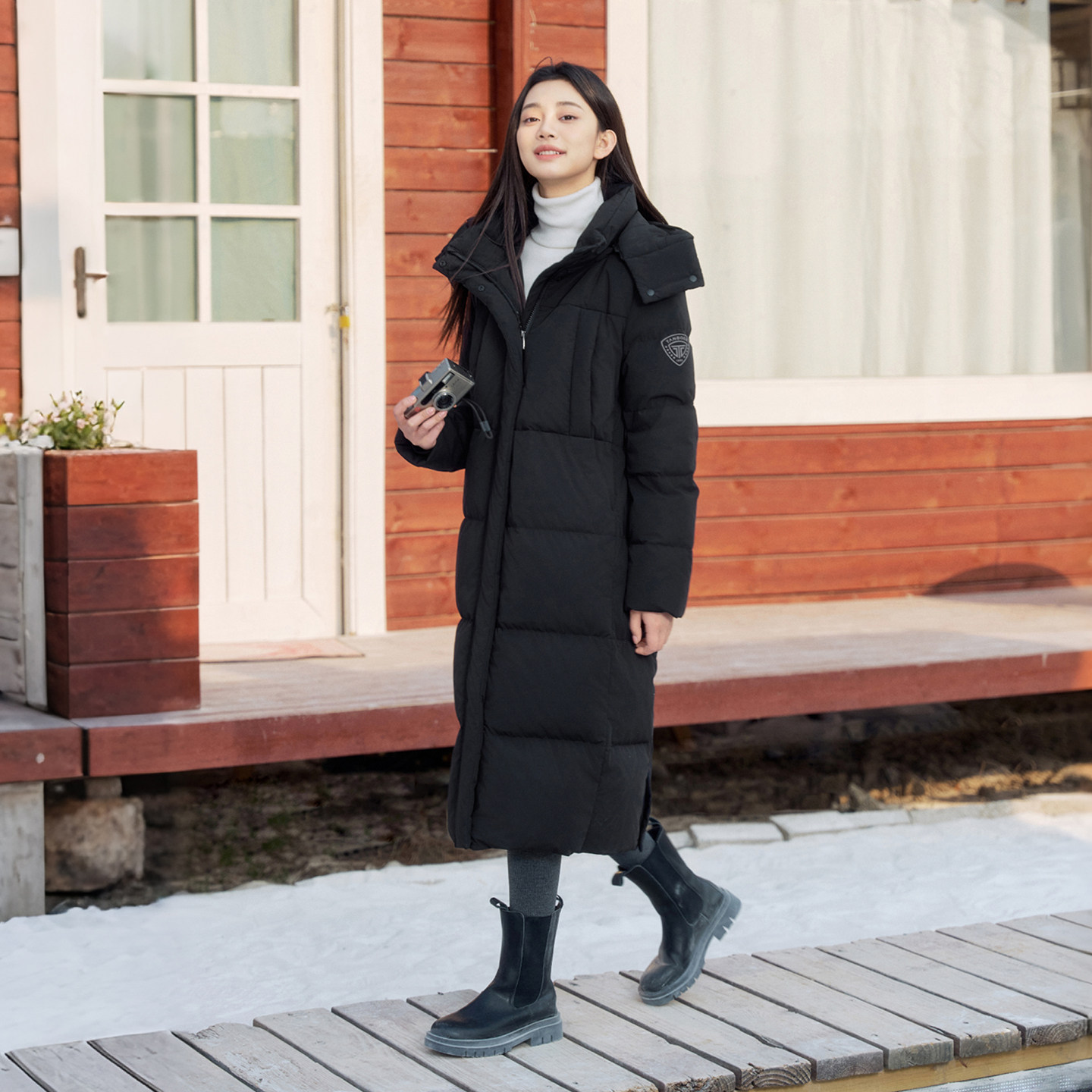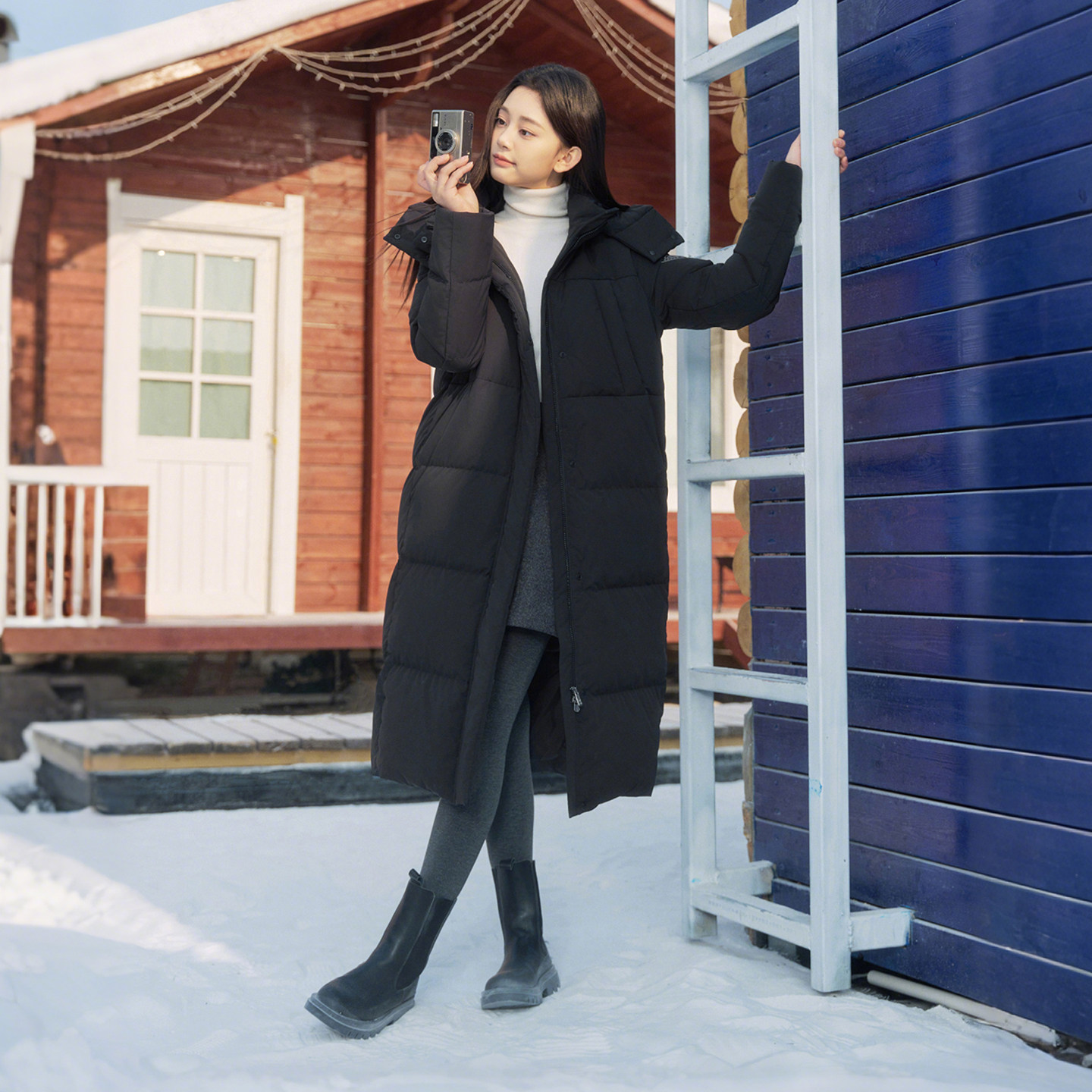 坦博尔新款羽绒服女长款过膝运动时尚加厚保暖可脱卸帽外套