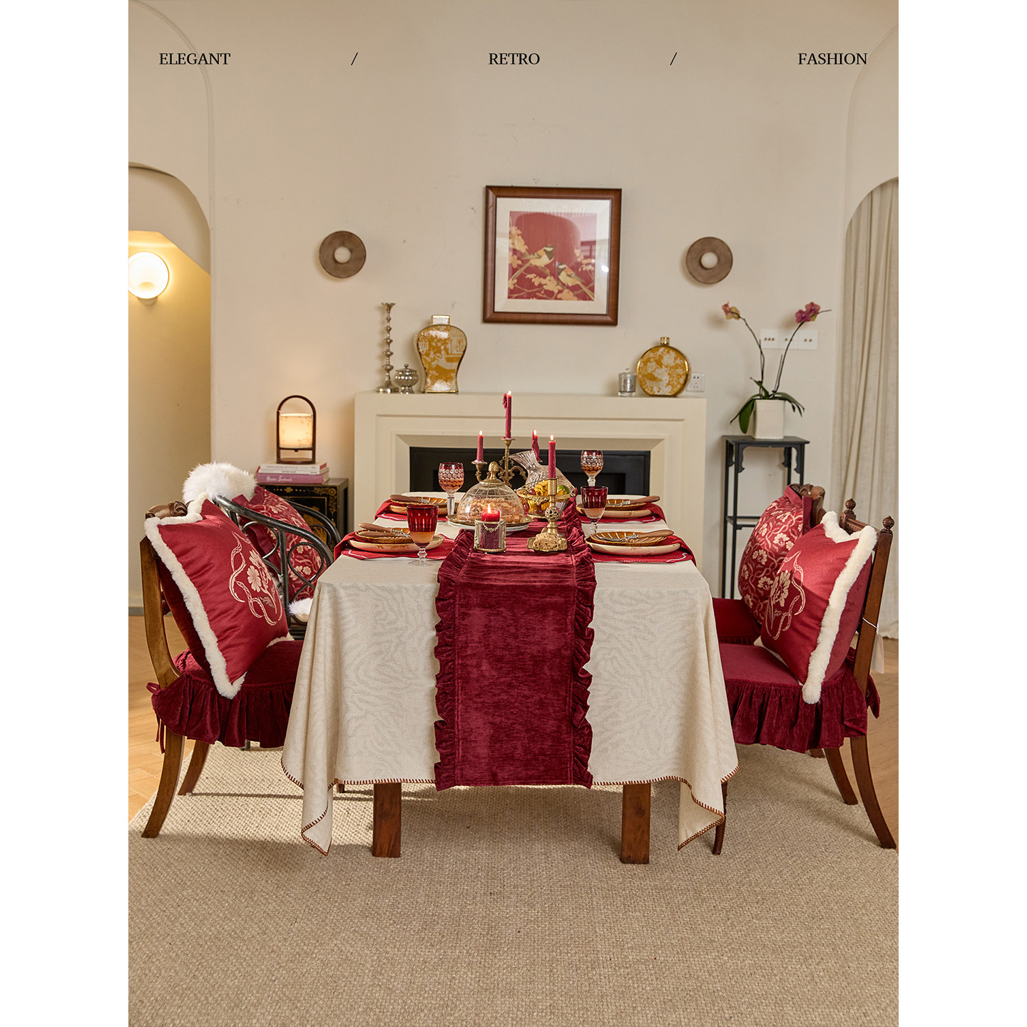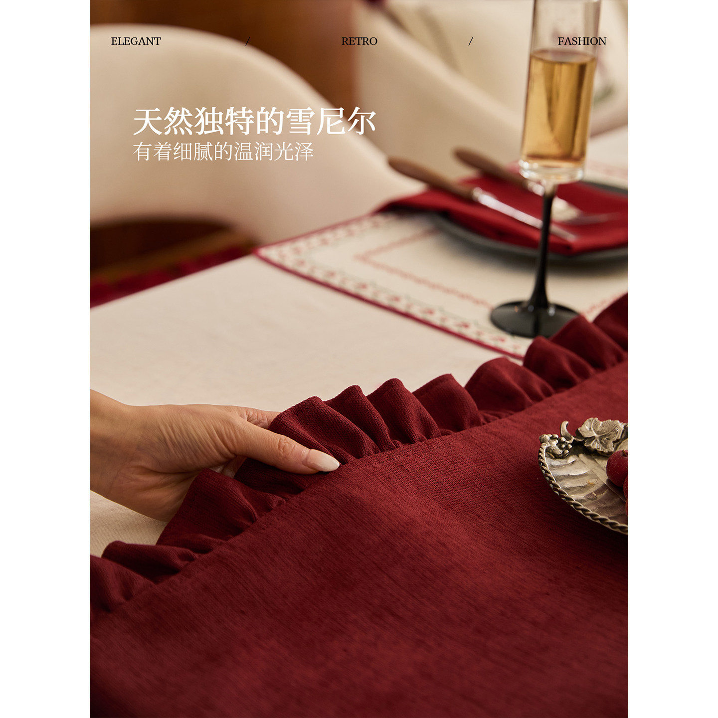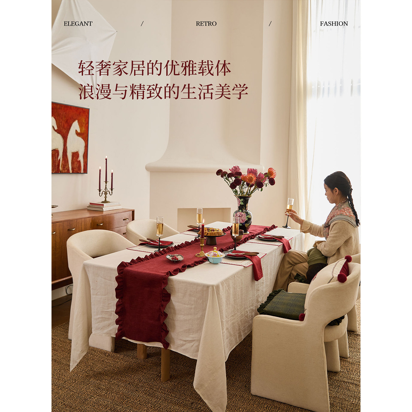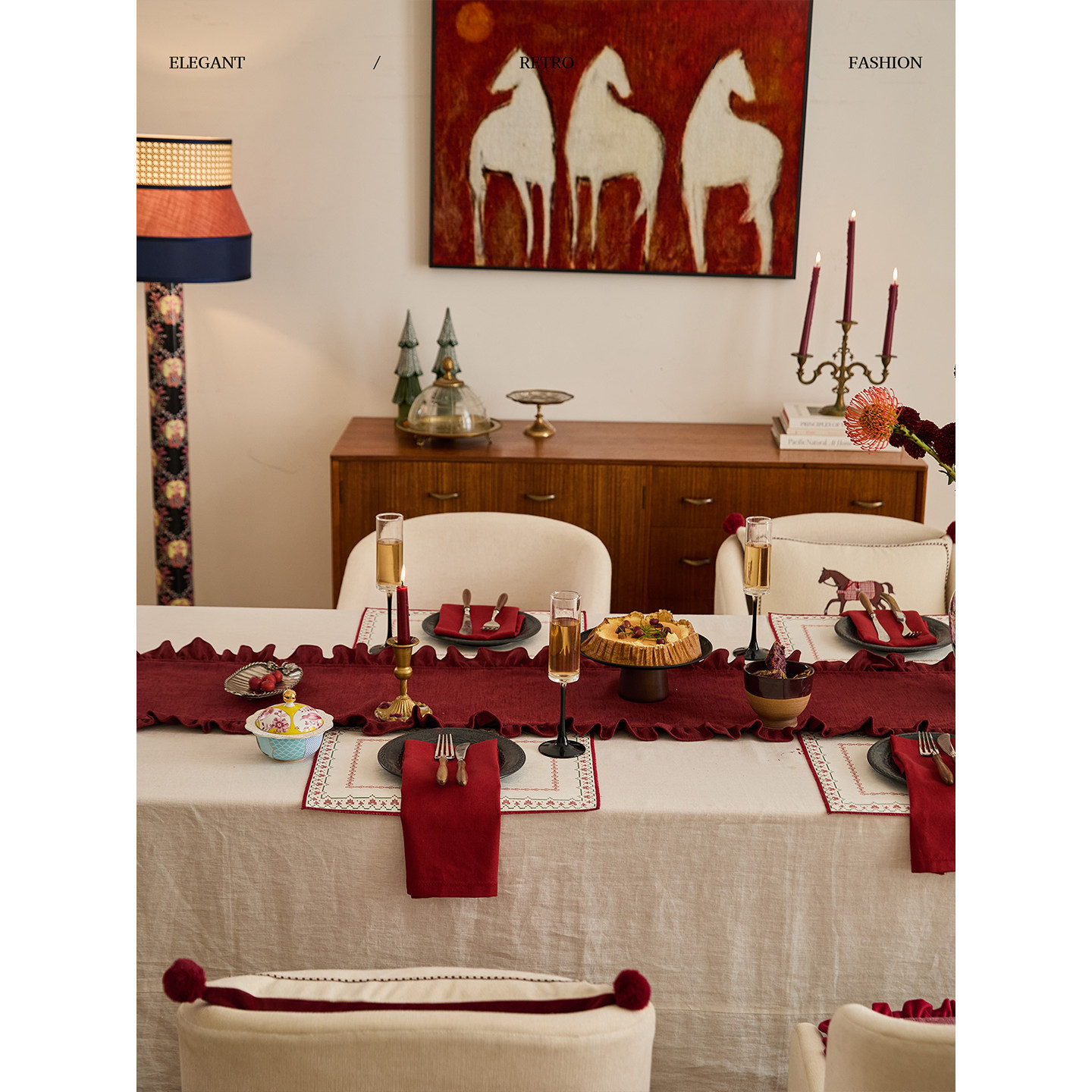 蜡笔派辛妮桌旗新年红色现代简约餐桌盖布喜庆长条床旗茶旗