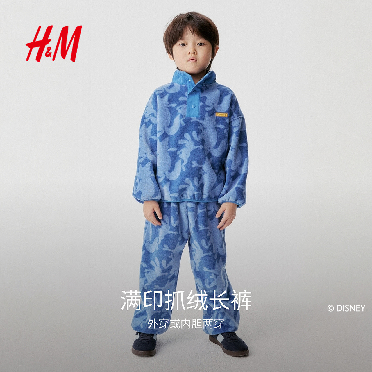 【疯狂动物城联名】HM童装儿童男童女童裤子印花抓绒长裤1318145