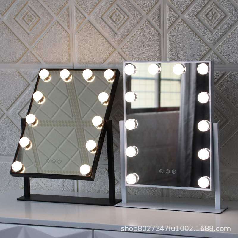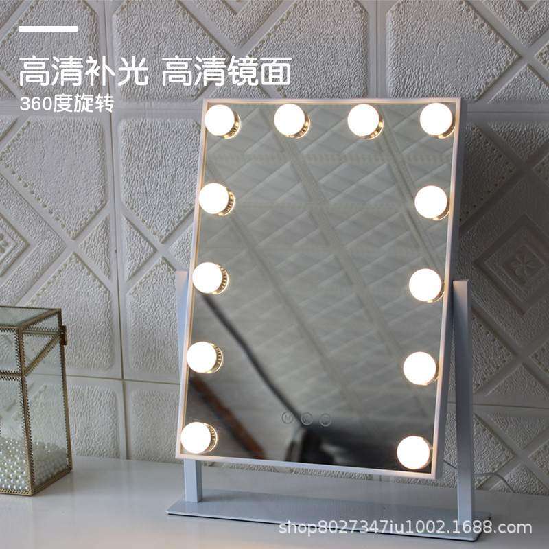 便携led化妆镜桌面台式带灯泡梳妆镜网红高清美妆镜补光镜子