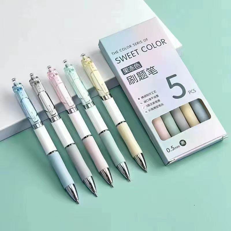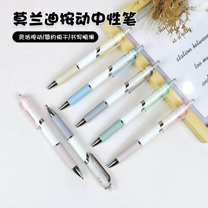 莫兰迪高颜值果冻按动中性笔考试专用简约大容量碳素笔0.5子弹头