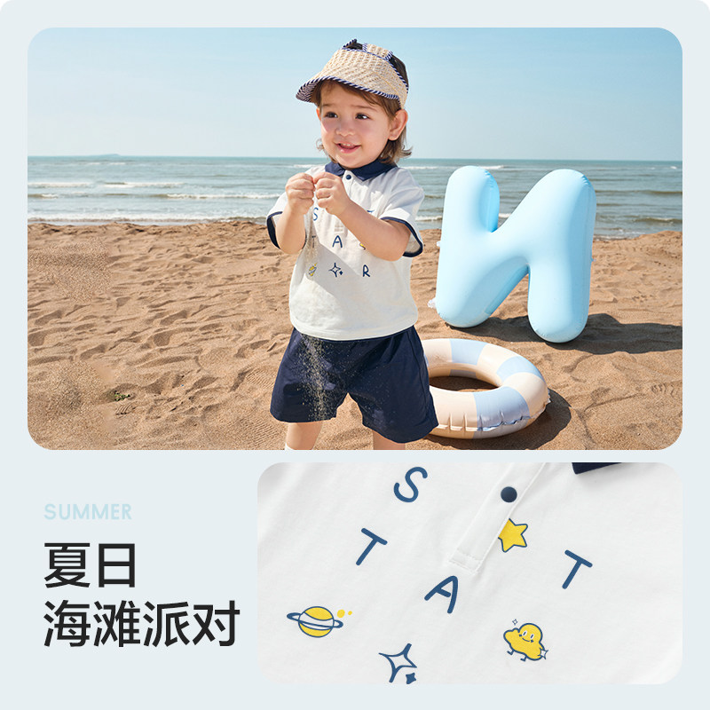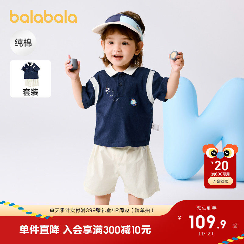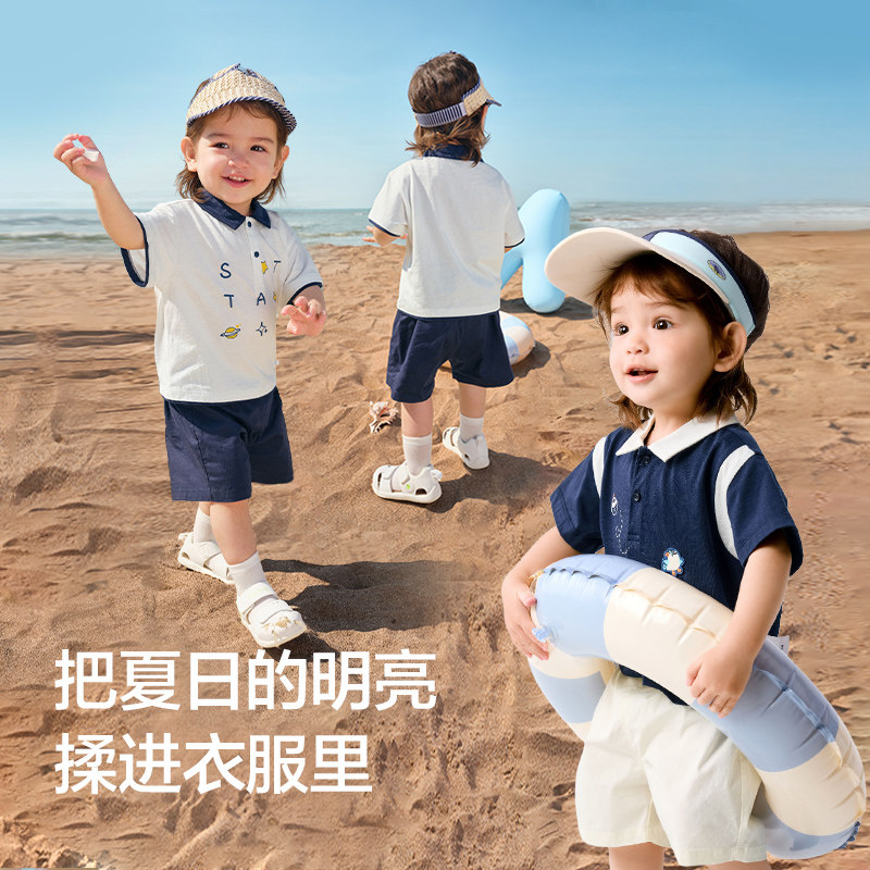 巴拉巴拉宝宝短袖套装夏装男童Polo衫两件套2025新款时尚洋气潮酷