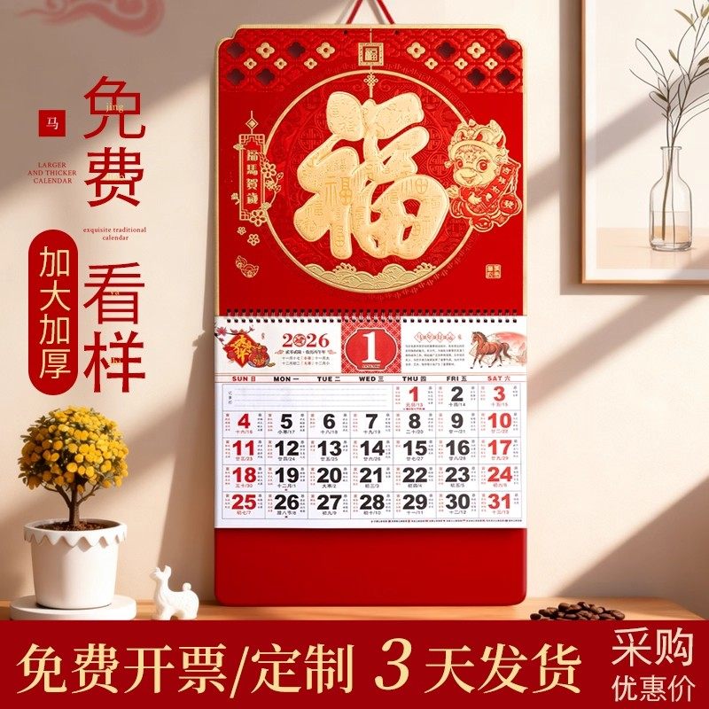 挂历2026年新款高端定制手撕挂墙福字高档加厚日历家用特大号精致吊牌大尺寸年历创意马年大字月历定做
