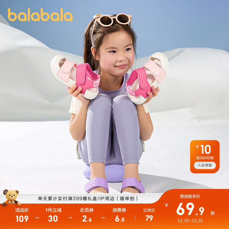 巴拉巴拉童鞋儿童凉鞋女童包头沙滩鞋防滑2025夏季新款鞋子魔术贴