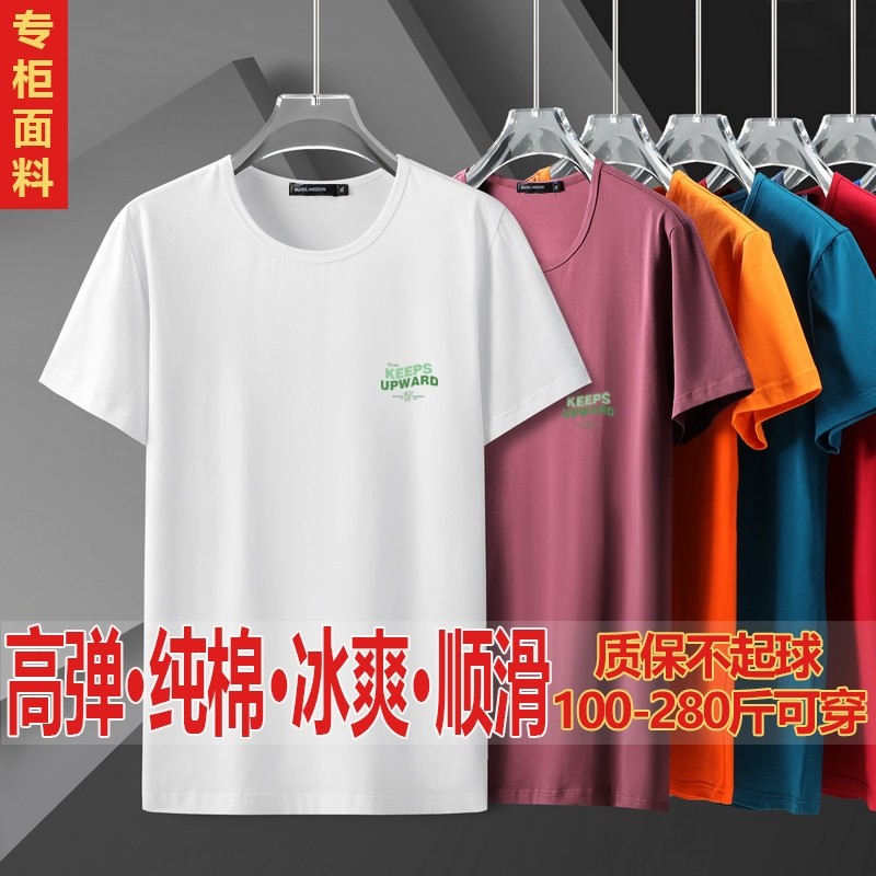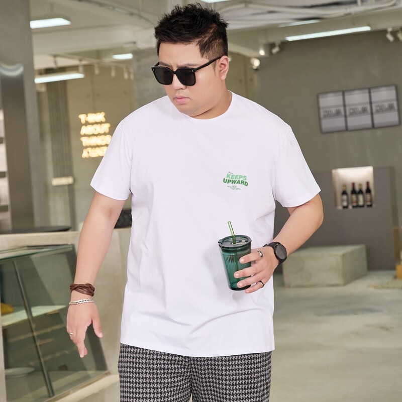 加肥加大码潮牌短袖T恤男 纯棉宽松休闲薄半袖打底胖子肥佬体恤衫