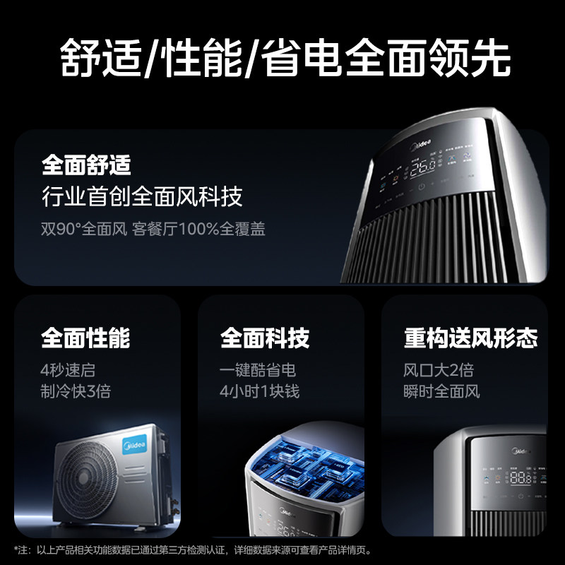【全面风】美的空调立式3匹一级变频柜机大客厅家用冷暖二代风尊