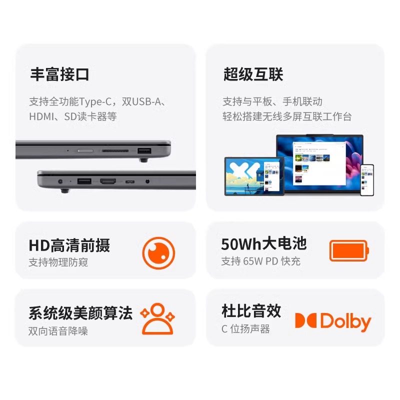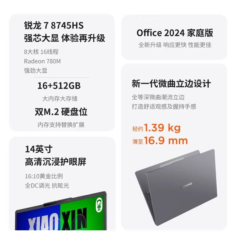 [政府补贴20%+2025新品]联想小新14 锐龙R7 轻薄办公本笔记本电脑