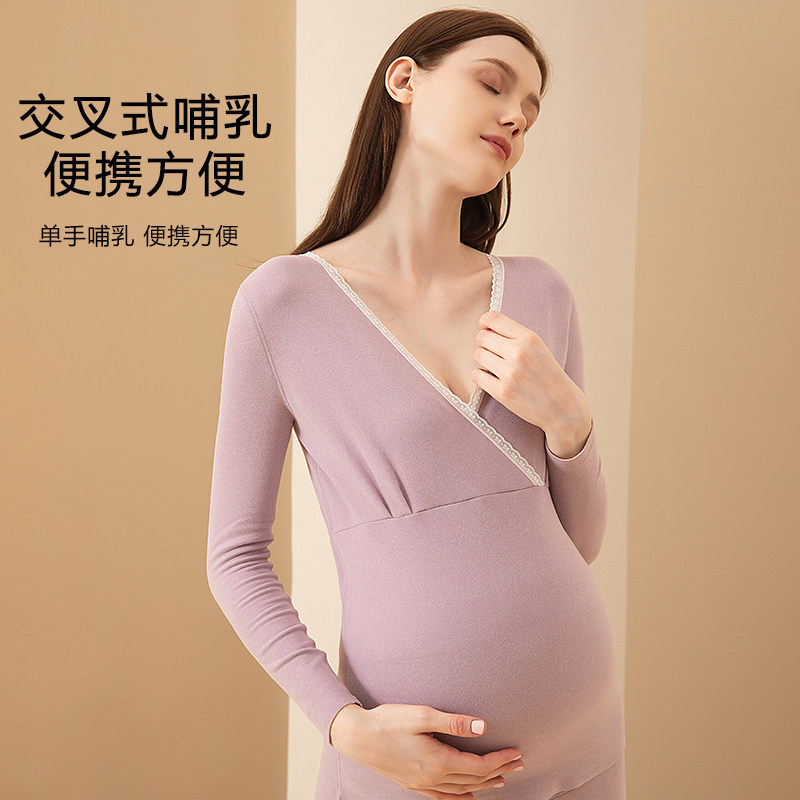 婧麒孕妇秋衣秋裤套装保暖内衣秋冬季哺乳睡衣产后打底衫月子服女