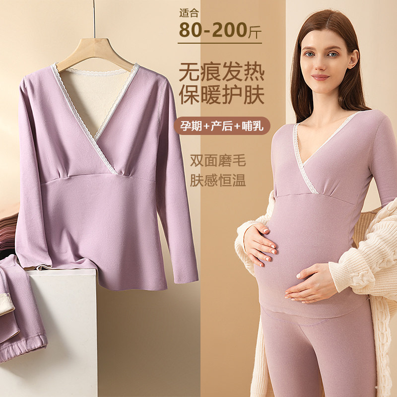 婧麒孕妇秋衣秋裤套装保暖内衣孕期打底产后哺乳喂奶大码月子服冬