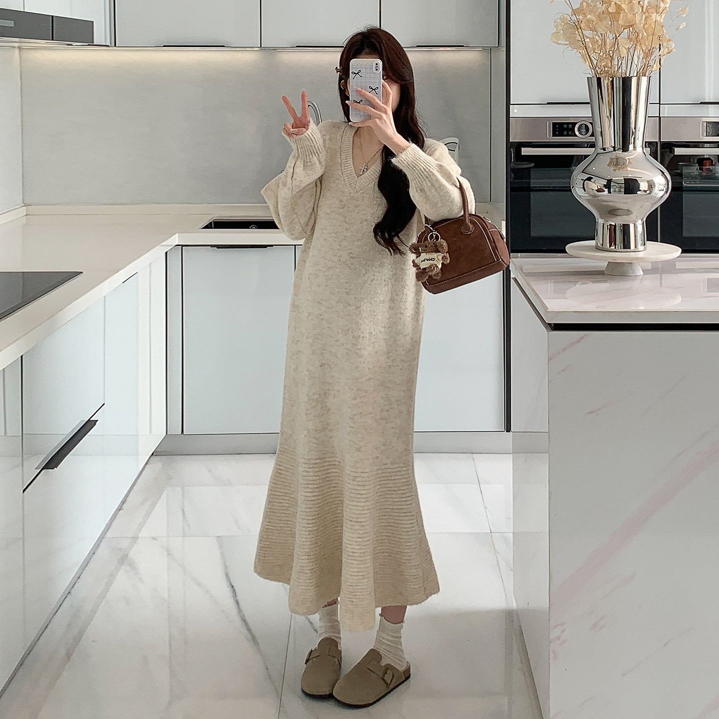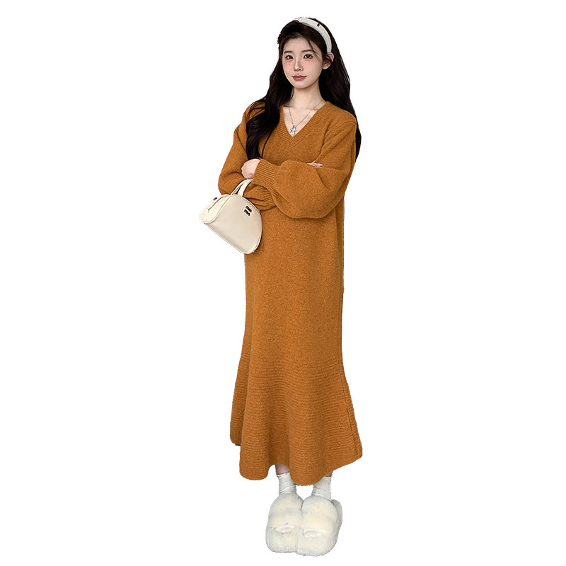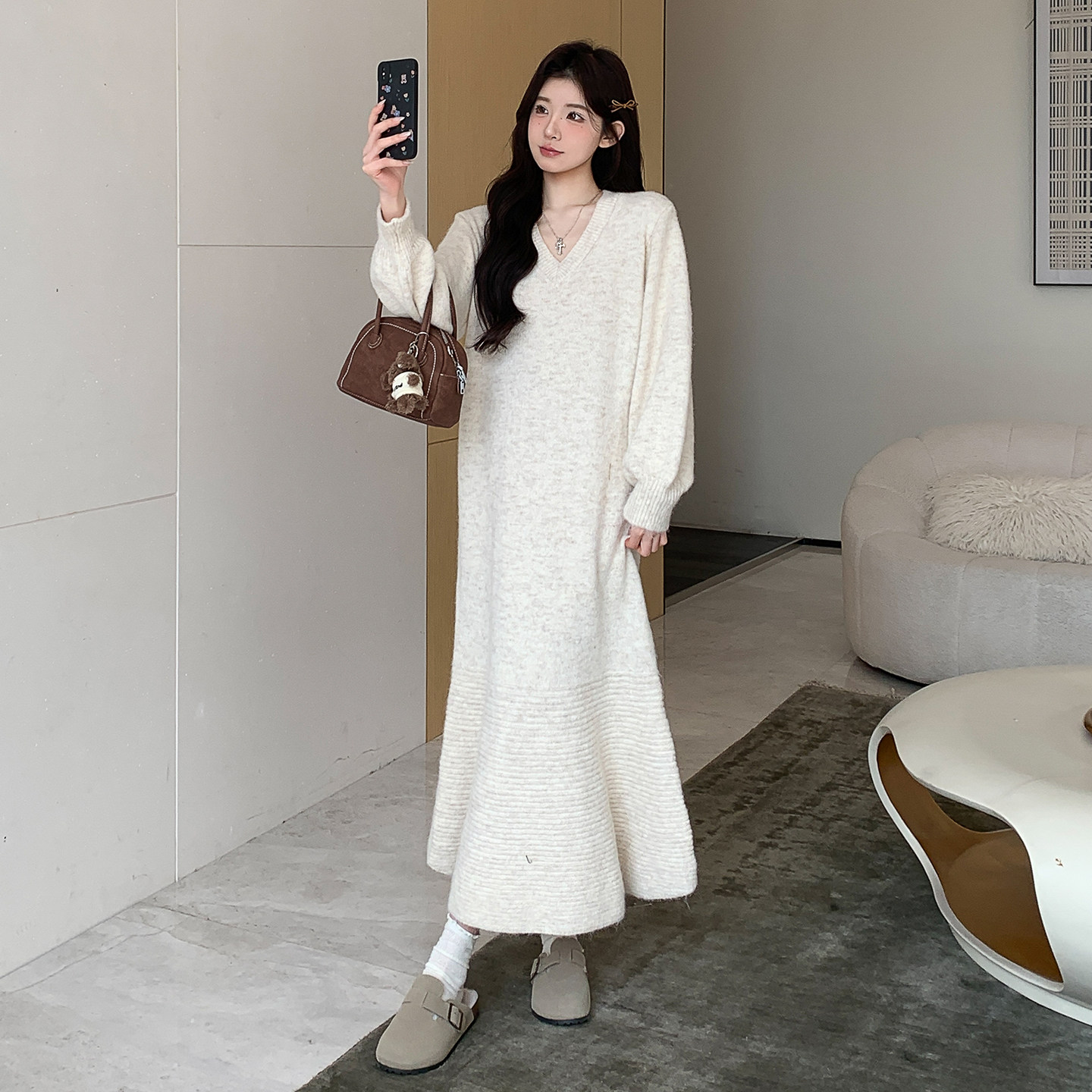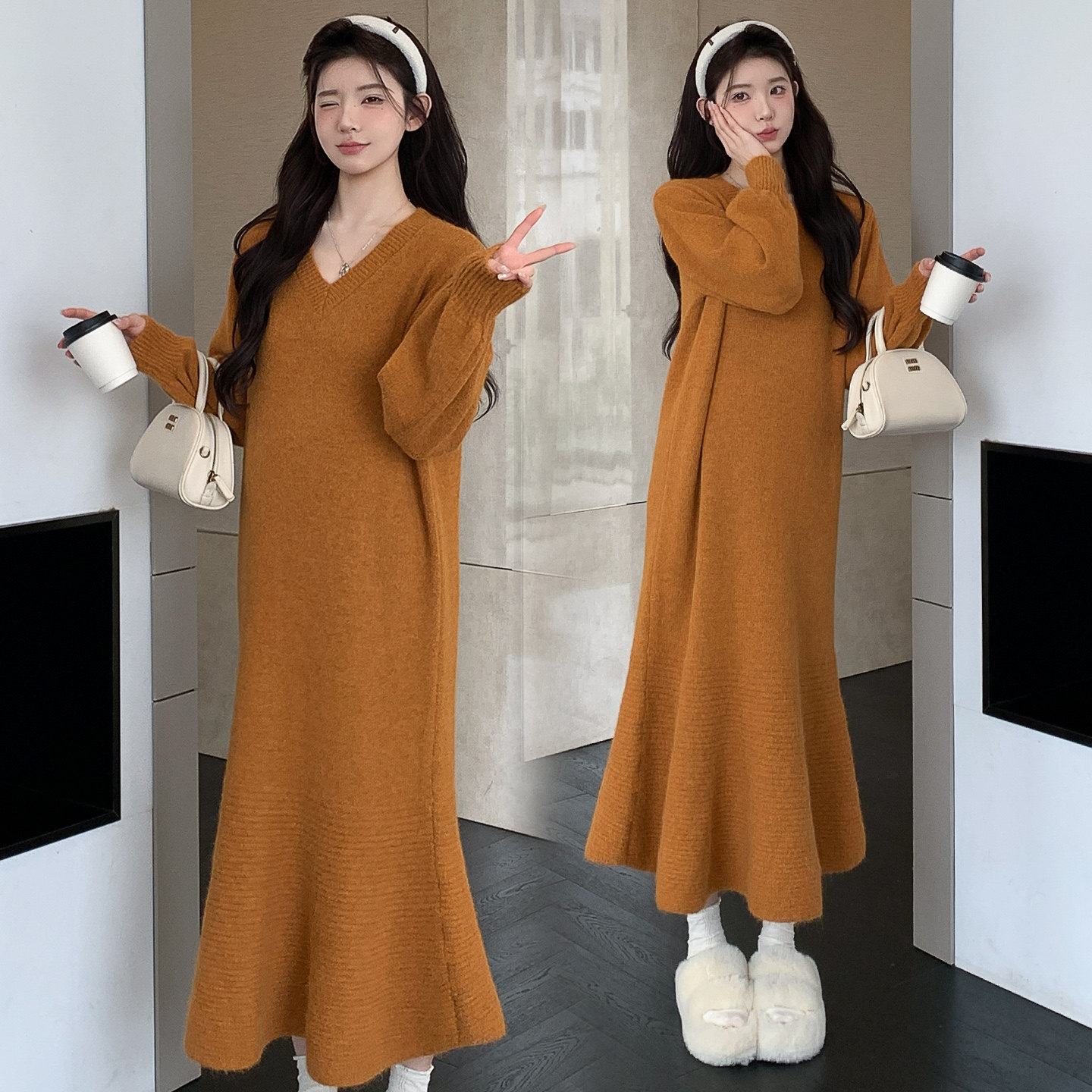 婧麒孕妇装连衣裙2025新款秋冬洋气宽松慵懒风针织毛衣裙子女