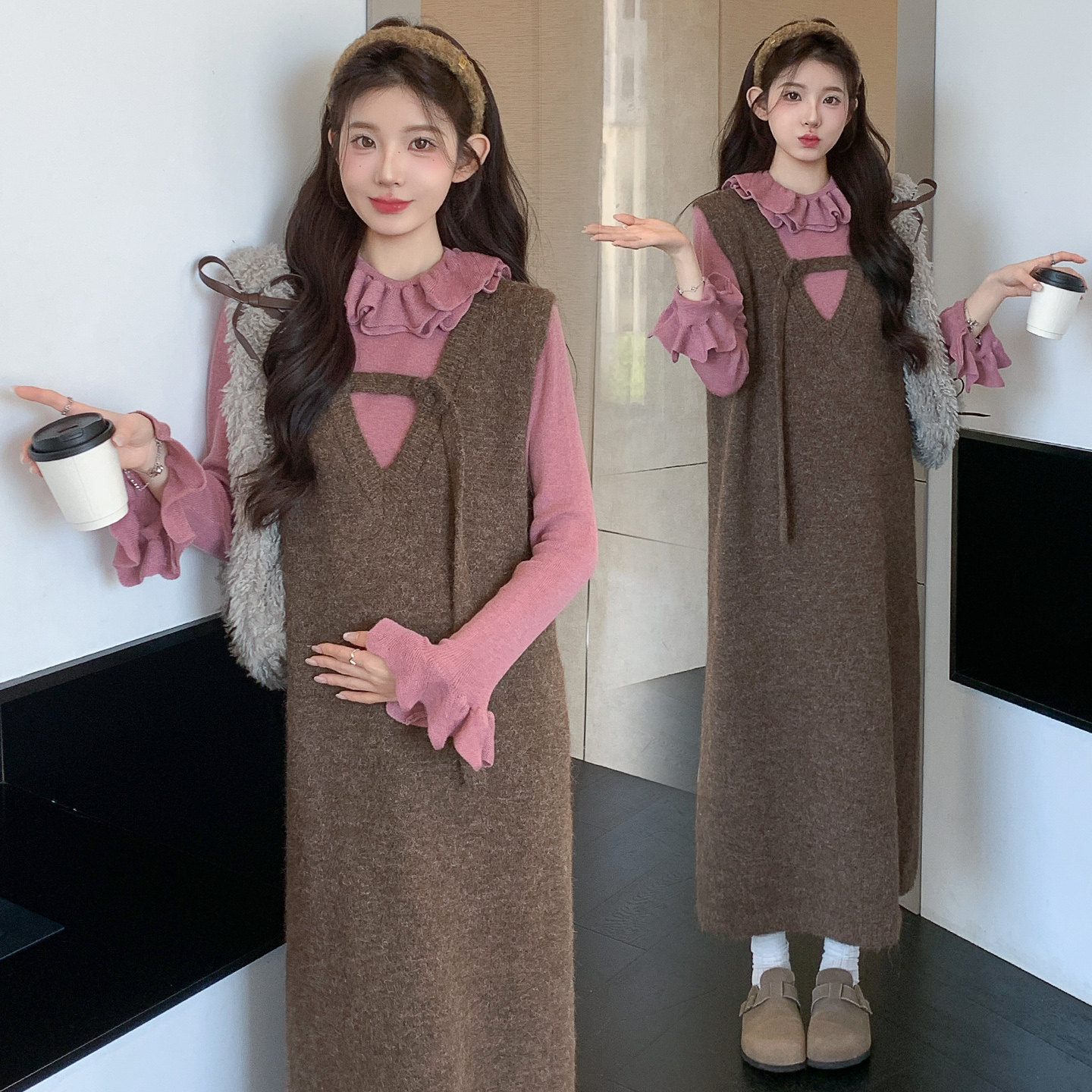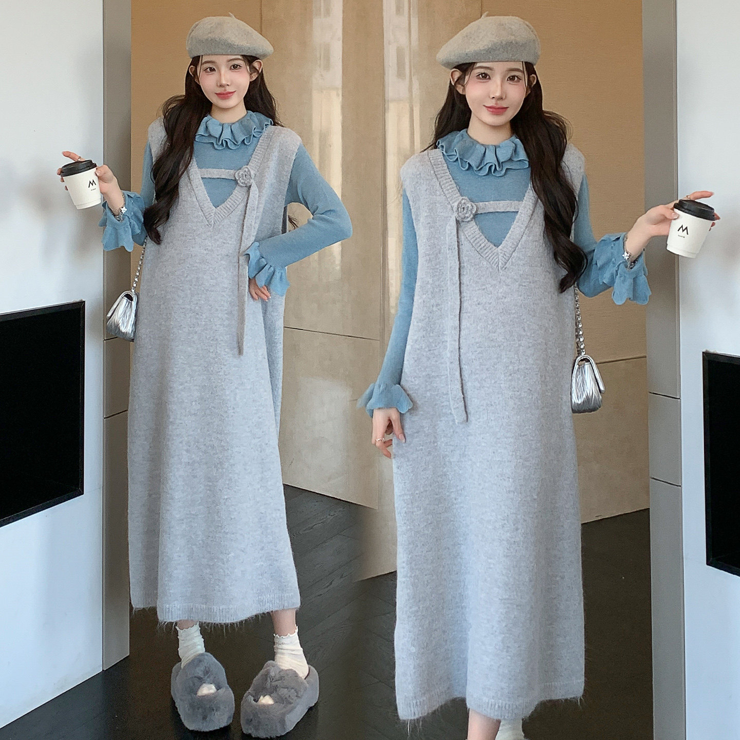 婧麒孕妇装秋冬套装秋冬季新款韩版时尚洋气时髦毛衣连衣裙两件套