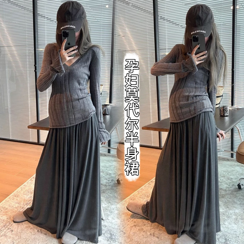 婧麒孕妇半身裙2025新款秋冬款莫代尔中长款半身裙子孕期穿搭裙子
