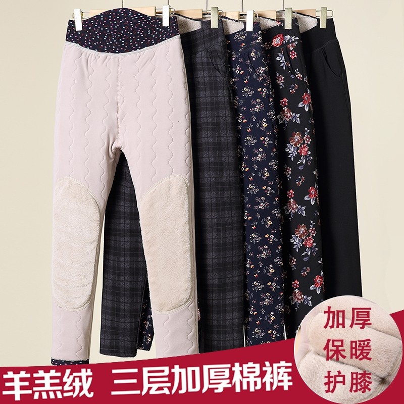 老年人女裤秋冬款妈妈加厚奶奶装保暖棉裤护腰护膝加绒花裤子外穿