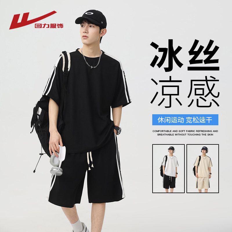 回力冰丝运动套装男士夏季2025新款青少年休闲短袖短裤男生一整套