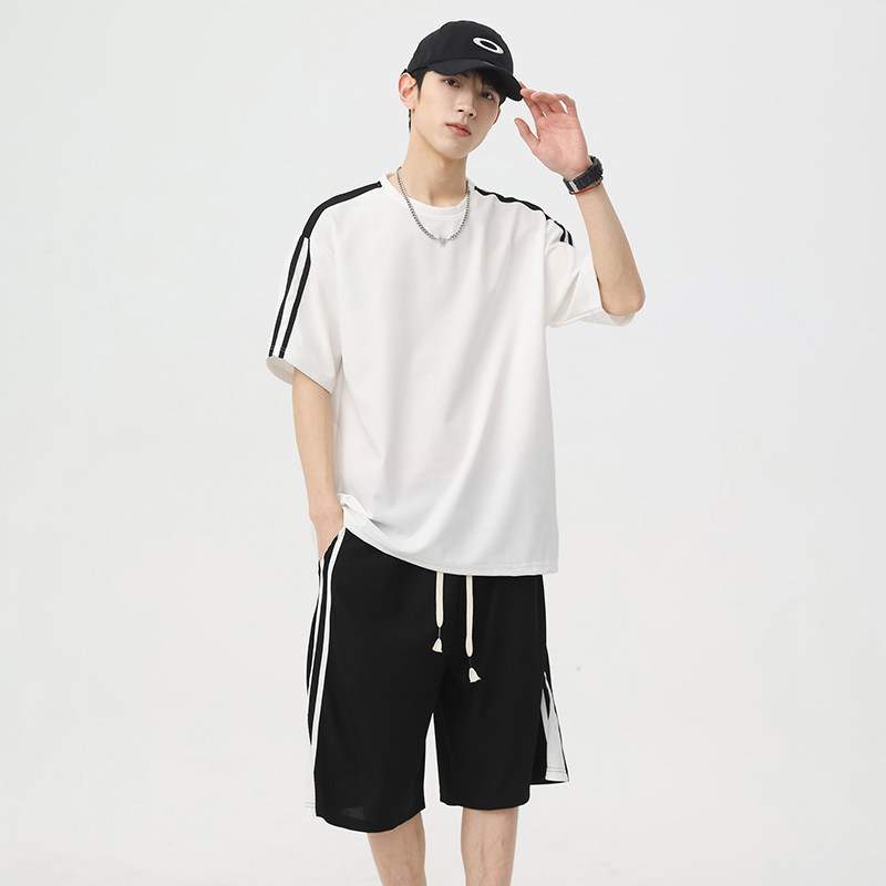 【一折专区】奥莱夏季运动套装男休闲圆领短袖短裤两件套帅气穿搭