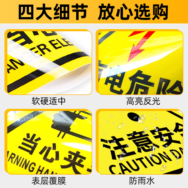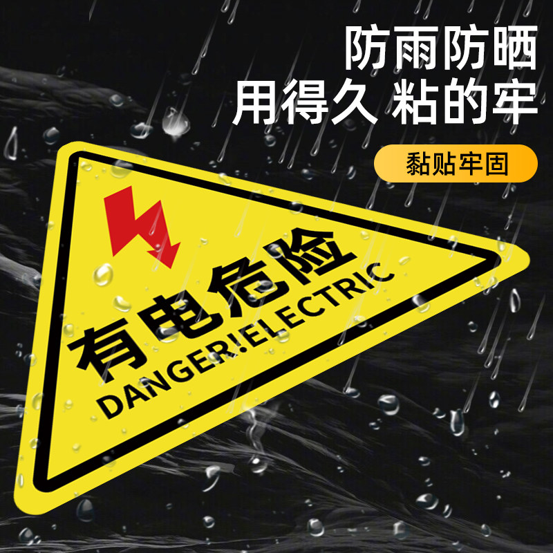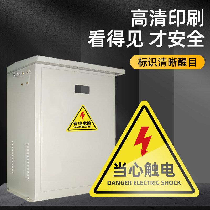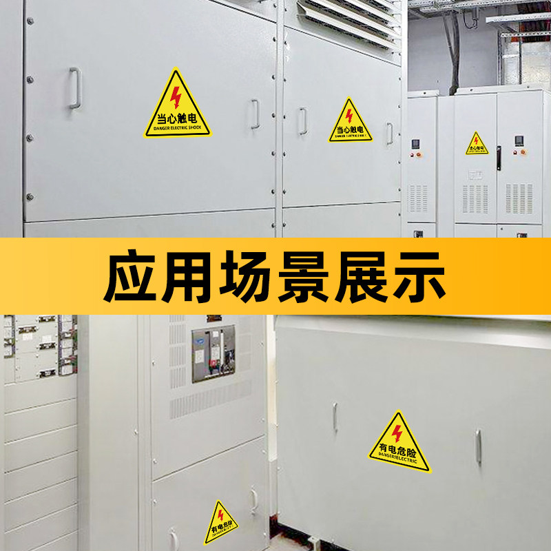 有电危险警示贴5*5cm三角形闪电当心触电标识牌10*10cm电力配电箱安全设备标签贴纸户外背胶防水反光标志pvc