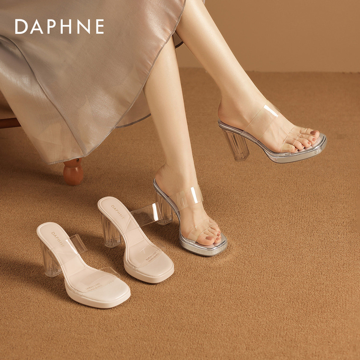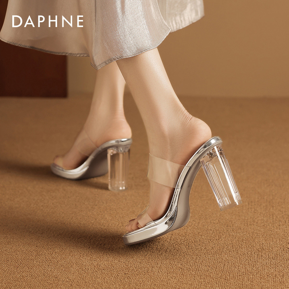 达芙妮凉鞋女款2026新款水晶透明拖鞋女夏外穿凉拖女鞋粗跟高跟鞋