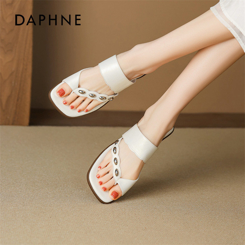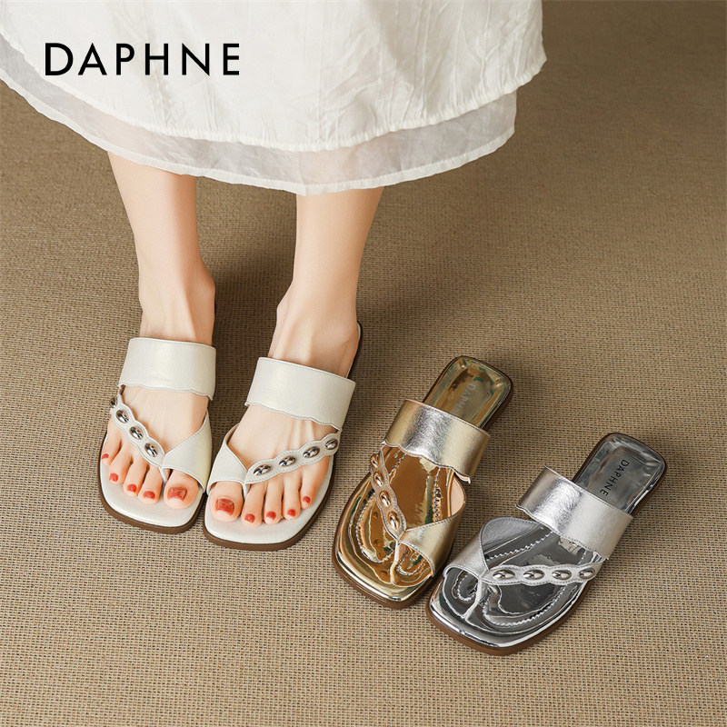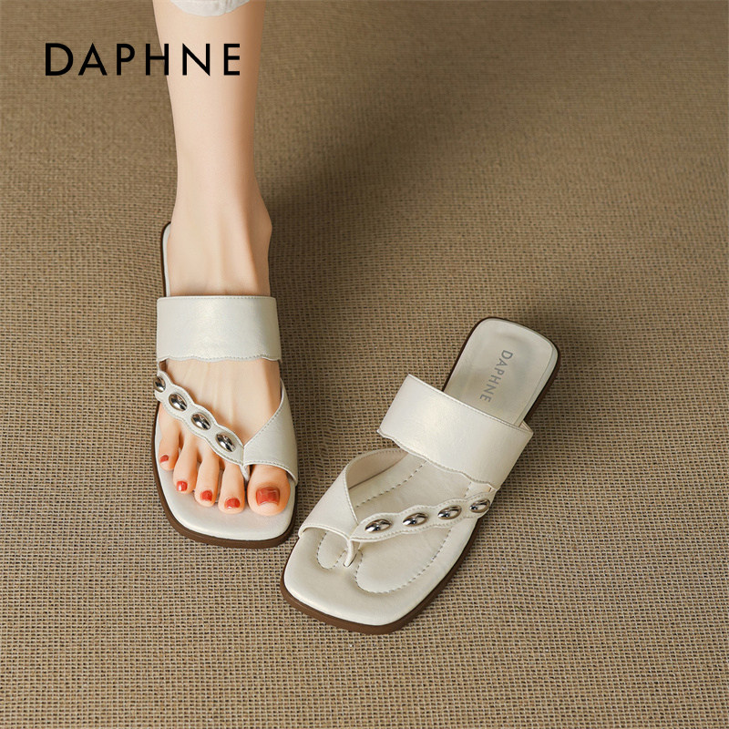达芙妮法式夹脚拖鞋女春夏外穿2026绝美巨好看的凉鞋子度假平底拖