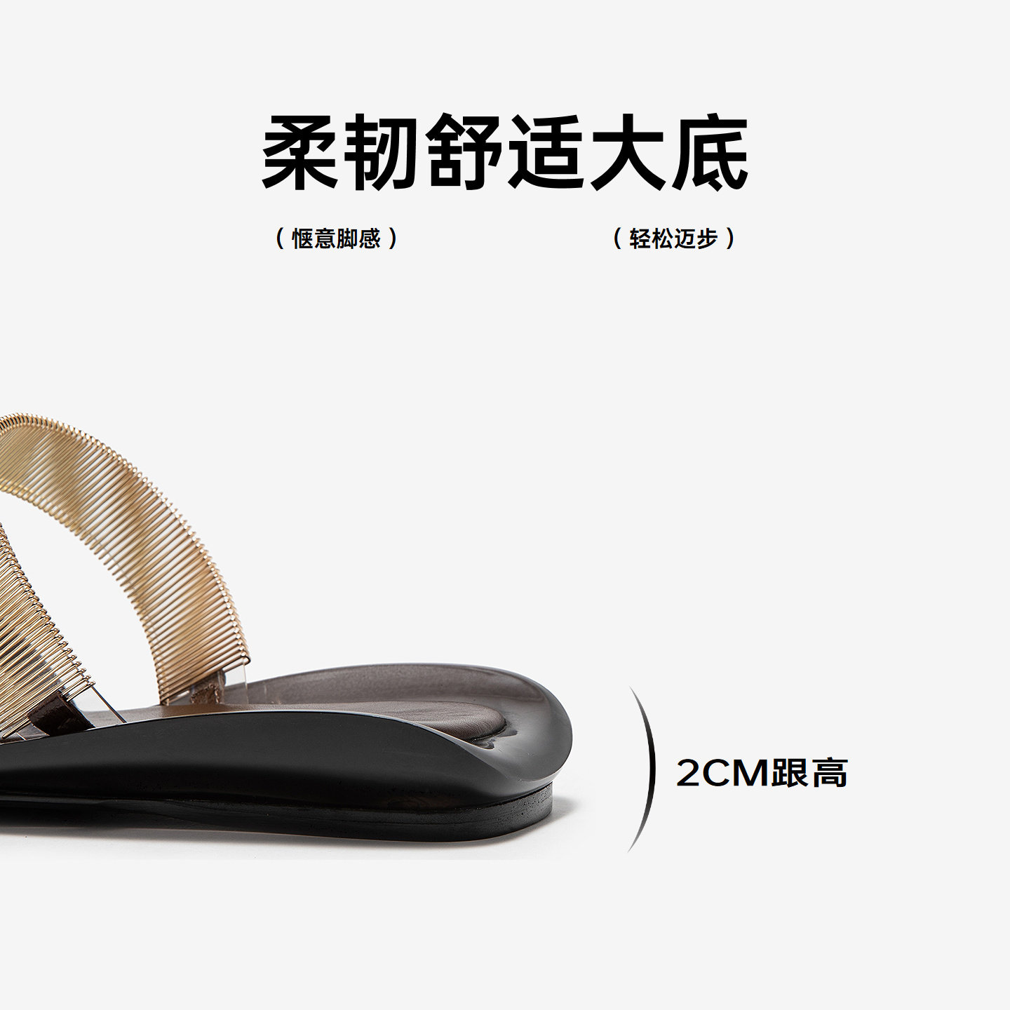 真皮踩屎感~骄屿凉拖鞋女水钻一字带2025新款夏季方头绝美高跟鞋