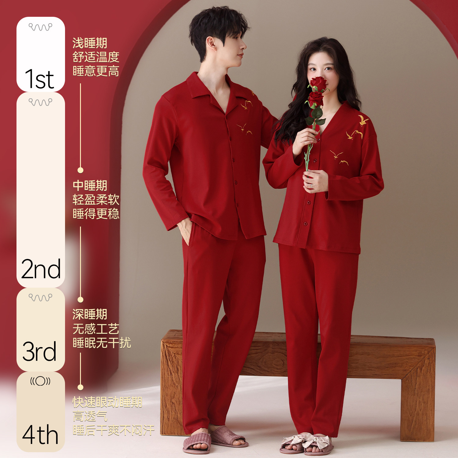 都市丽人情侣睡衣纯棉结婚本命年新年红色家居服套装2026新款秋冬