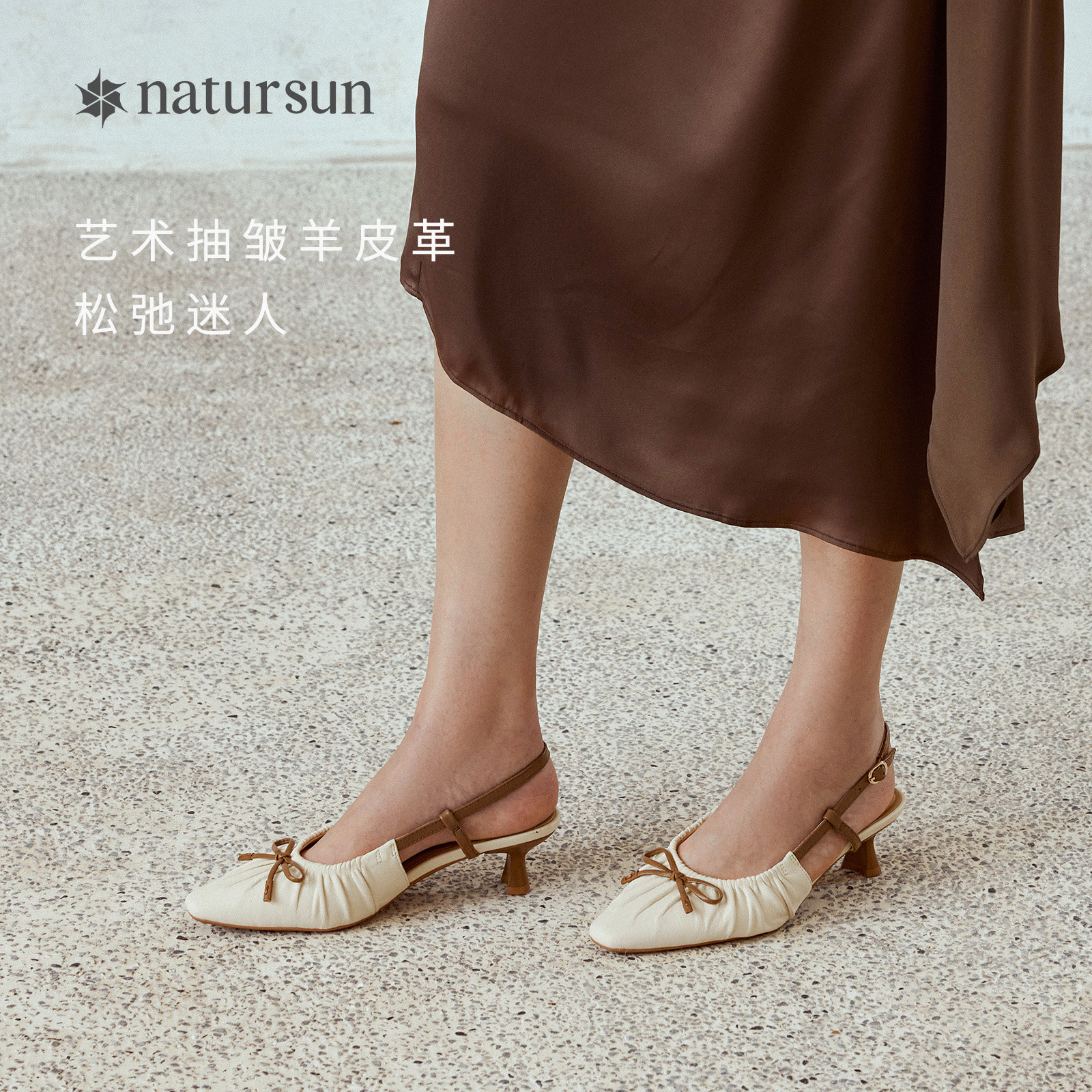 natursun尖头时装凉鞋女2025夏季新款舒适羊皮法式复古小猫春季