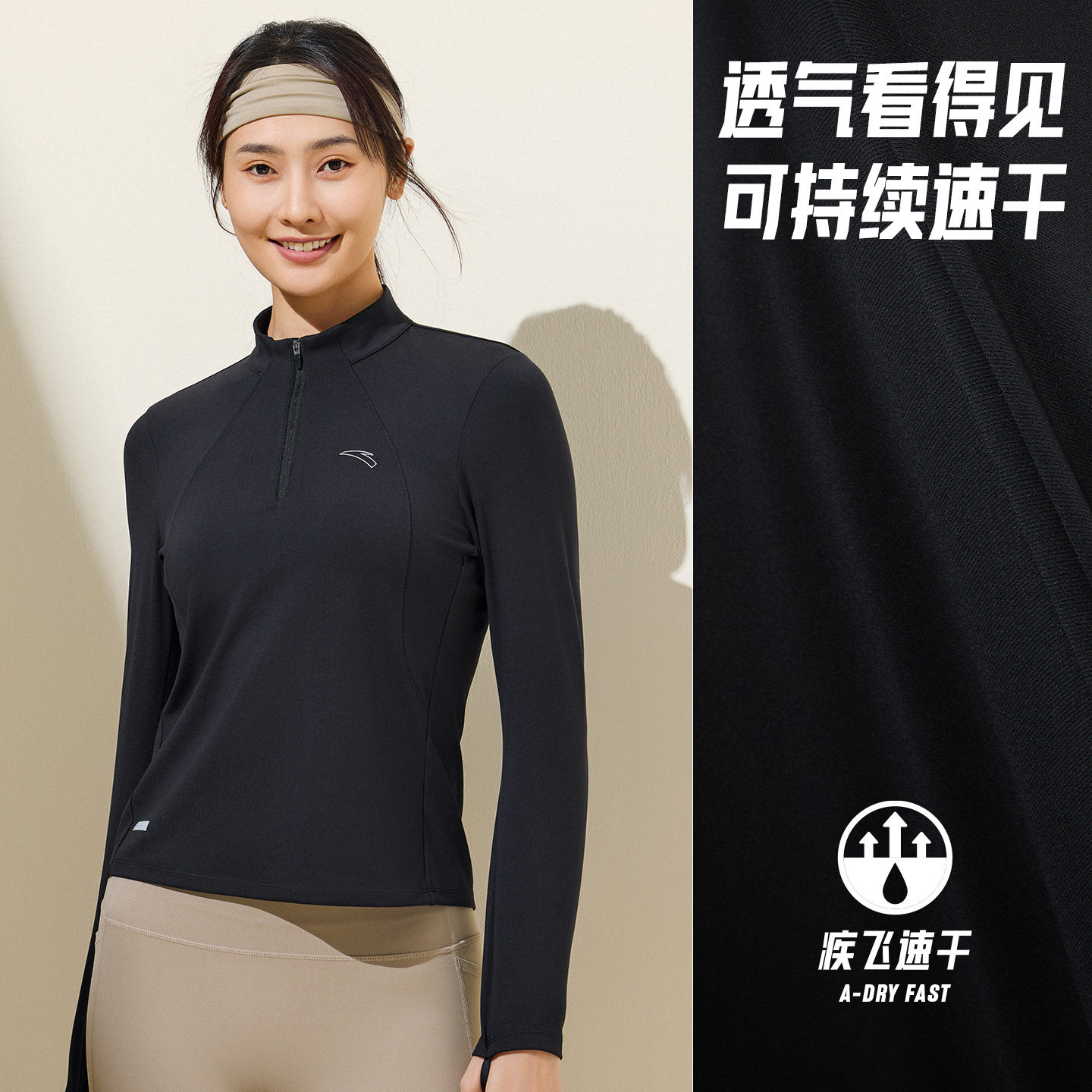 安踏零压T丨修身半拉链长袖抗菌t恤女跑步套头衫瑜伽健身运动上衣