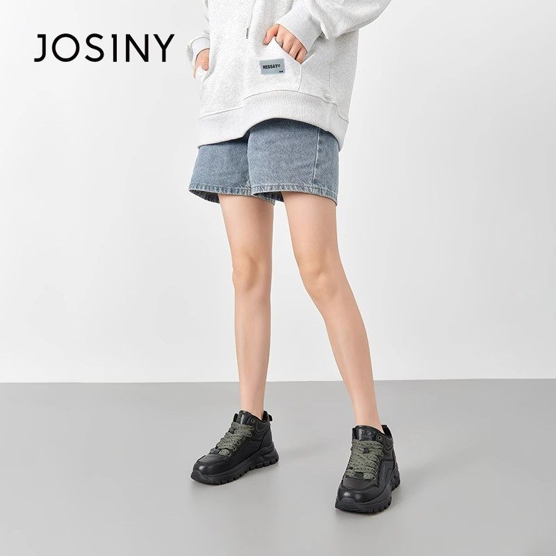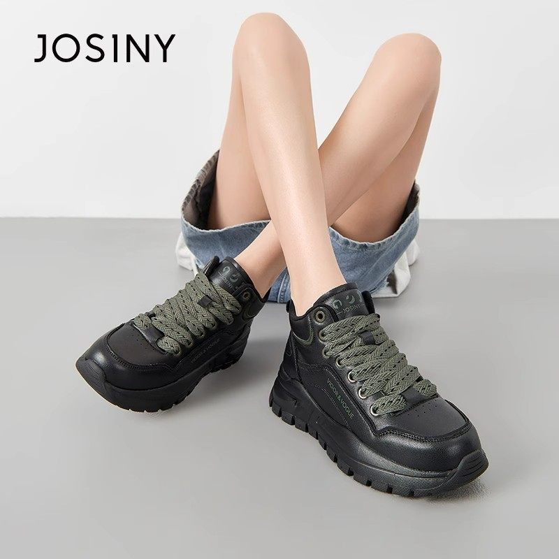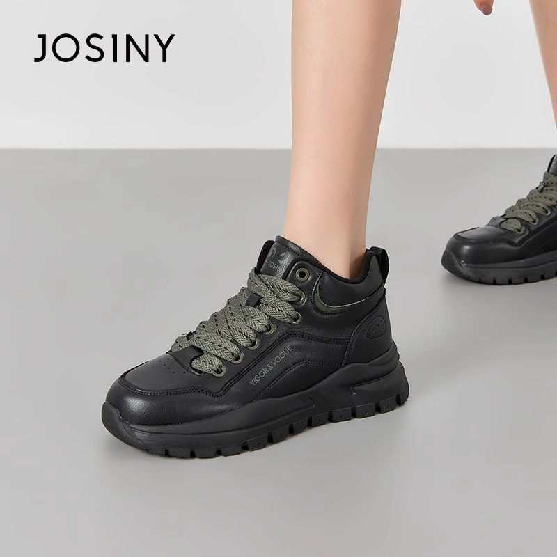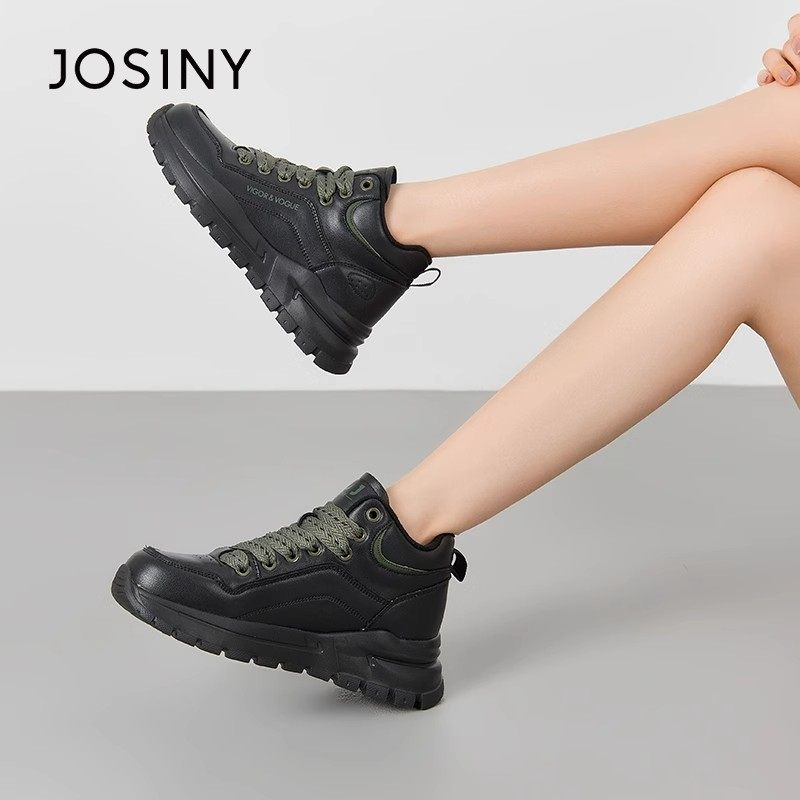 卓诗尼运动风短靴女秋冬新款加绒棉鞋子厚底增高马丁靴高帮休闲鞋